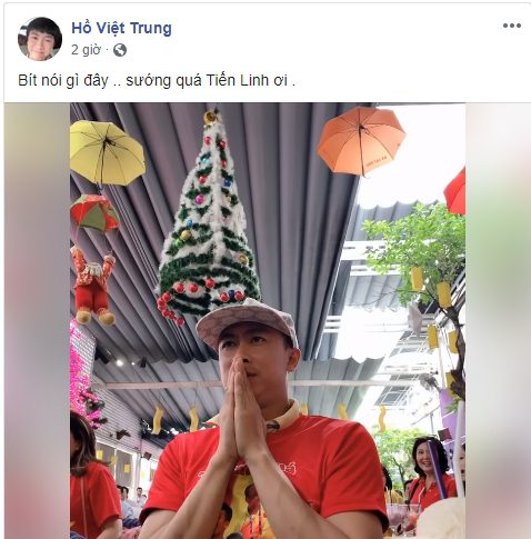 Trong một bối cảnh “thong thả” hơn, ca sĩ Hồ Việt Trung cùng bạn bè xem bóng đã cũng không thể kìm nổi niềm xúc động khi đội nhà san bằng tỉ số. Trên trang cá nhân, anh viết: “Biết nói gì đây, sướng quá Tiến Linh ơi!”