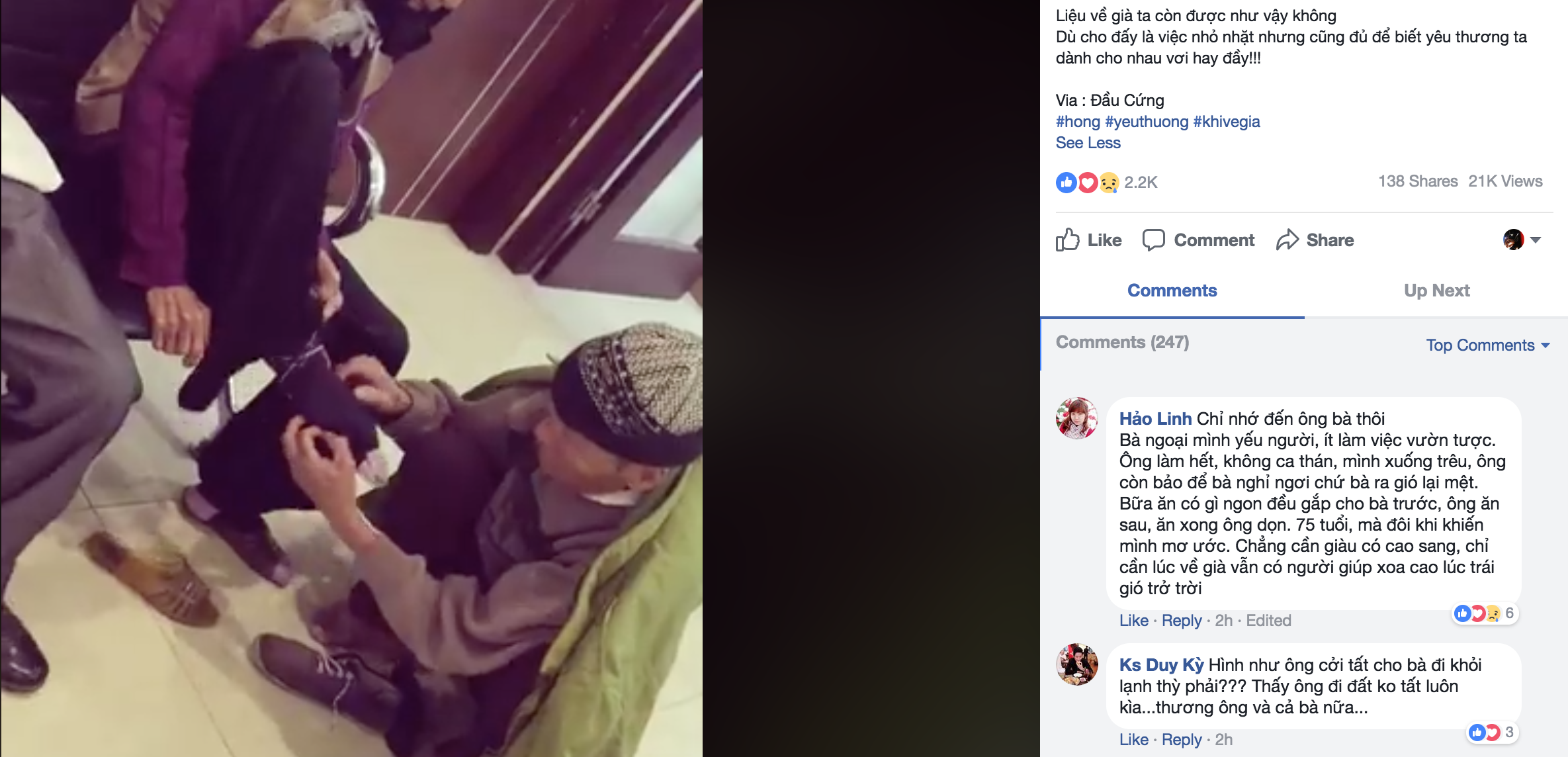 Clip ông đi tất giúp bà khiến cư dân mạng cảm động.
