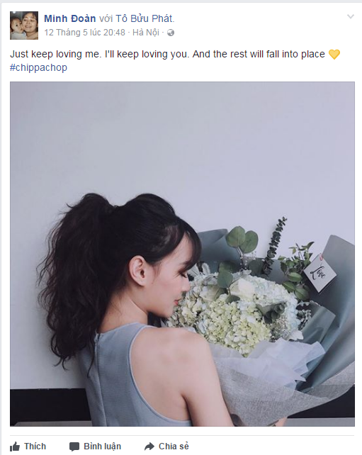 Những lời yêu thương mà Sun Ht dành cho Phở Đặc Biệt trên trang facebook cá nhân. Chắc chắn cô nàng sẽ cảm thấy vô cùng hạnh phúc với bó hoa lớn được anh người yêu tặng.