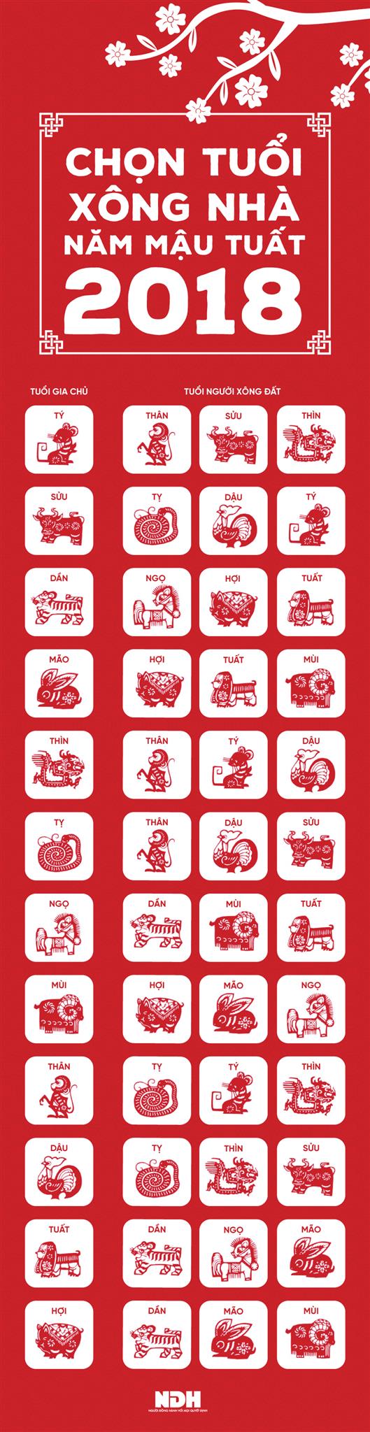 Theo các chuyên gia phong thủy khi chọn người xông đất nên chọn người có Thiên can, Địa chi, Ngũ hành tương sinh với Gia chủ là tốt nhất, Đồng thời Thiên can, Địa chi, Ngũ hành của người xông nhà nên tương sinh với Năm Mậu Tuất 2018. Cụ thể: