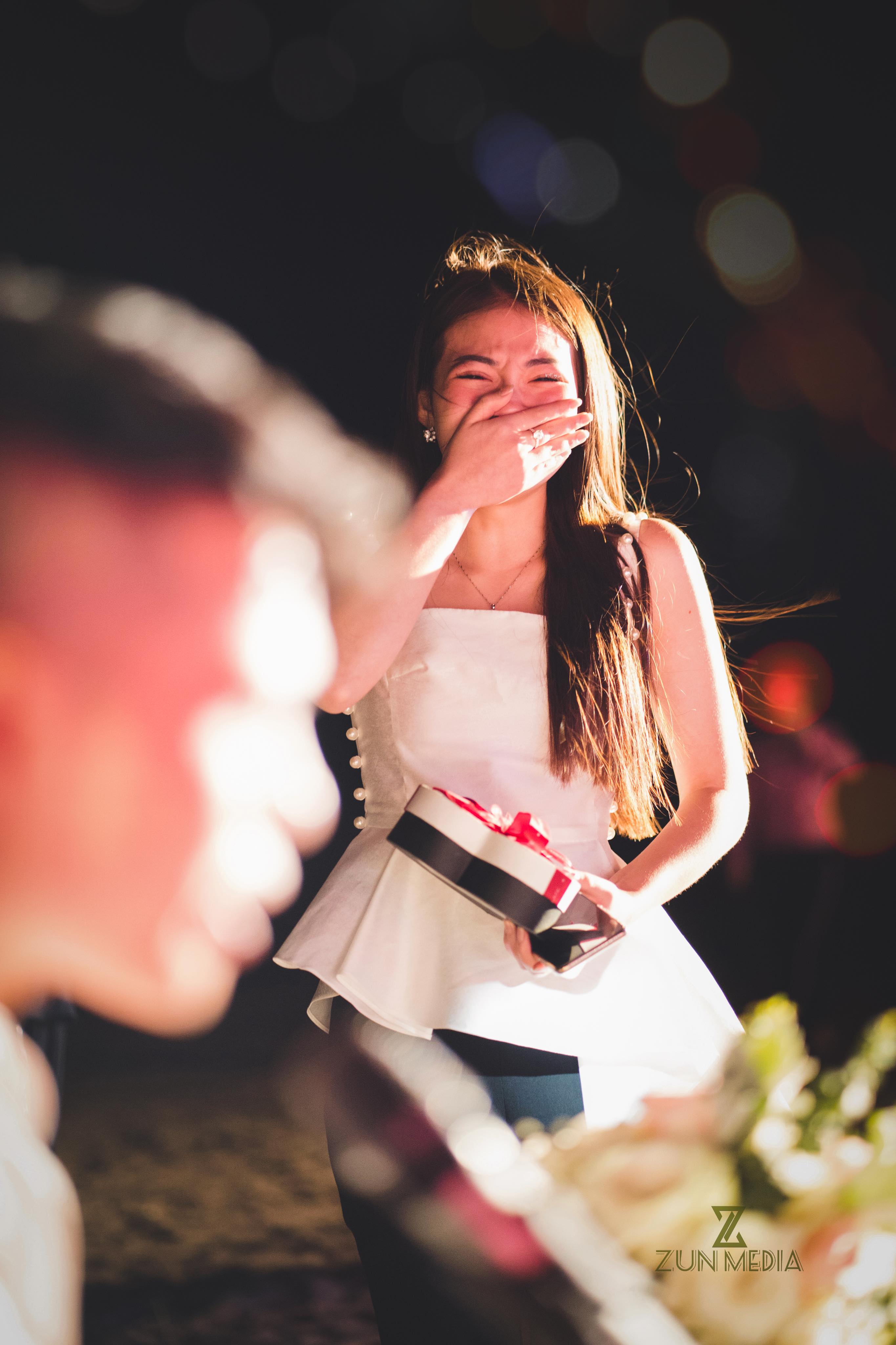 Màn cầu hôn bắt đầu khi chàng trai đánh đàn piano tặng cho bạn gái của mình. Cô đã vô cùng bất ngờ và bật khóc khi được bạn trai quỳ xuống và nói lời muốn được cùng cô sống bên nhau đến trọn đời. Cô gái gật đầu đồng ý và họ đã ôm hôn nhau trước sự chứng kiến của nhiều người.
