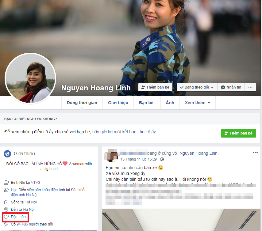 Tình trạng quan hệ của Hoàng Linh trên trang cá nhân đã đổi thành độc thân.