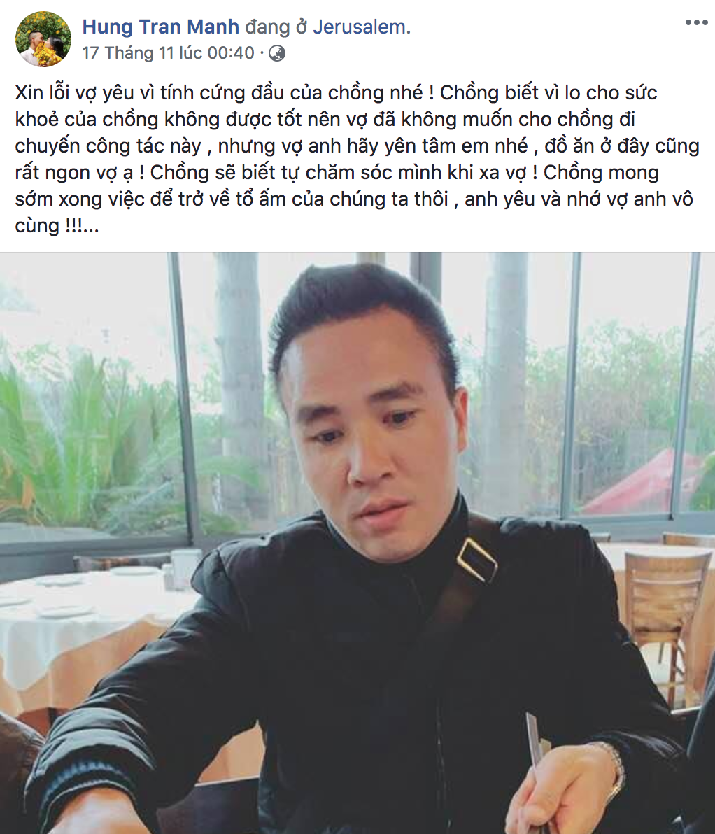Ông xã Mạnh Hùng liên tục thả thính vợ trên facebook