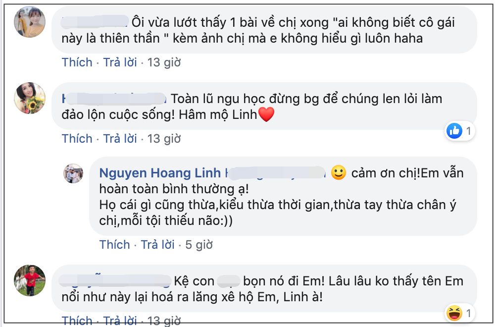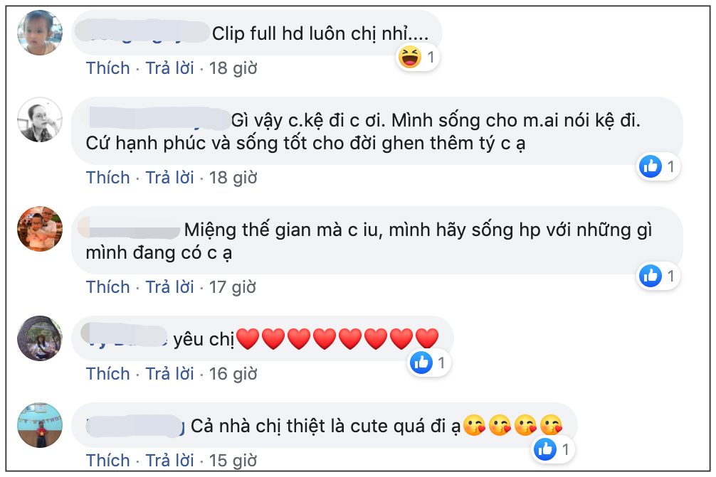 Bên dưới bài viết, cô cũng vui vẻ cười đùa cùng bạn bè và fans hâm mộ. Có vẻ như đây là một tin đồn từ trên trời rơi xuống của cô. Rất nhiều người đã khuyên cô đừng quá bận tâm đến những thành phần câu like trên MXH.