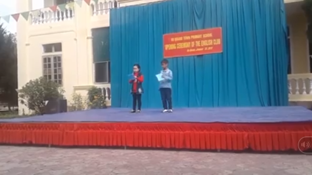 Mới đây, cộng đồng mạng lại truyền tay nhau đoạn clip ghi lại cảnh hai em học sinh tiểu học dẫn chương trình, trong đó bé trai nói tiếng Anh lưu loát khiến nhiều người ngỡ ngàng và thích thú.