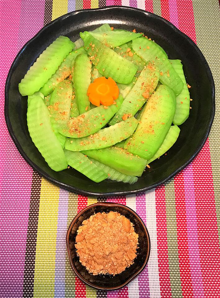 Hình một cô gái sexy được chị Tâm tỉ mỉ tạo hình từ rong biển, hành lá, ớt và cà muối.