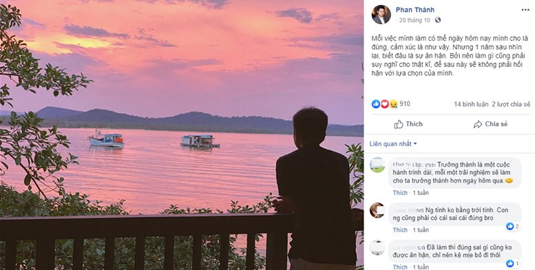 Thiếu gia Phan Thành cũng vừa đăng đàn chia sẻ về những ân hận trong quá khứ