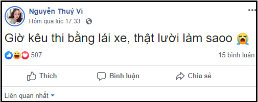 Trước đó, Thúy Vi cũng từng gián tiếp nhắc tới việc sắm xe khi than thở về chuyện phải đi thi lấy bằng lái. Lúc này, nhiều người đã đoán được cô nàng sắp tậu xe rồi.