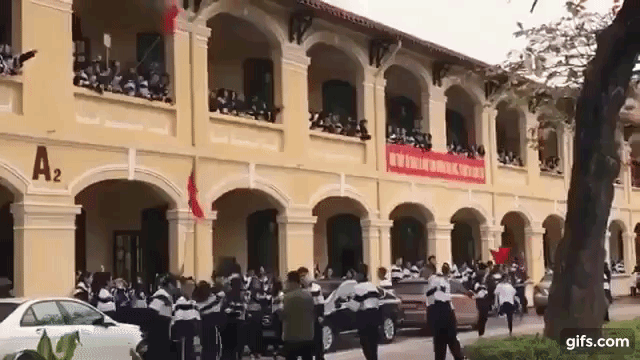 Học sinh trường THPT Ngô Quyền (Hải Phòng) đã có ngày được “vui tận trời mây” trong điệu nhạc Haru Haru của Big Bang. Theo chia sẻ, trong lúc nhà trường đang thử mic vô tình ca khúc của nhóm nhạc này vang lên, thế là trong khung cảnh “hữu tình” ấy, tập thể học sinh trường THPT Ngô Quyền không ai rủ ai đã cùng nhau nhảy theo điệu nhạc.