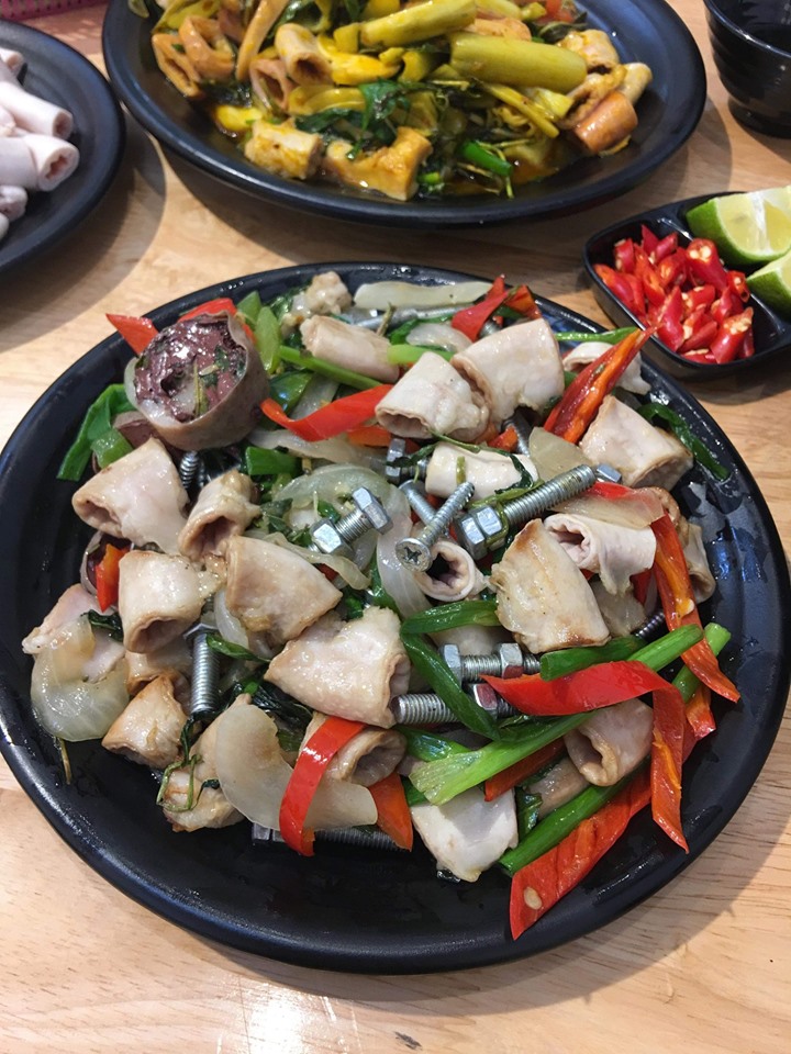 Món lòng xào ốc vít gây xôn xao mạng xã hội. Ảnh: BEATVN