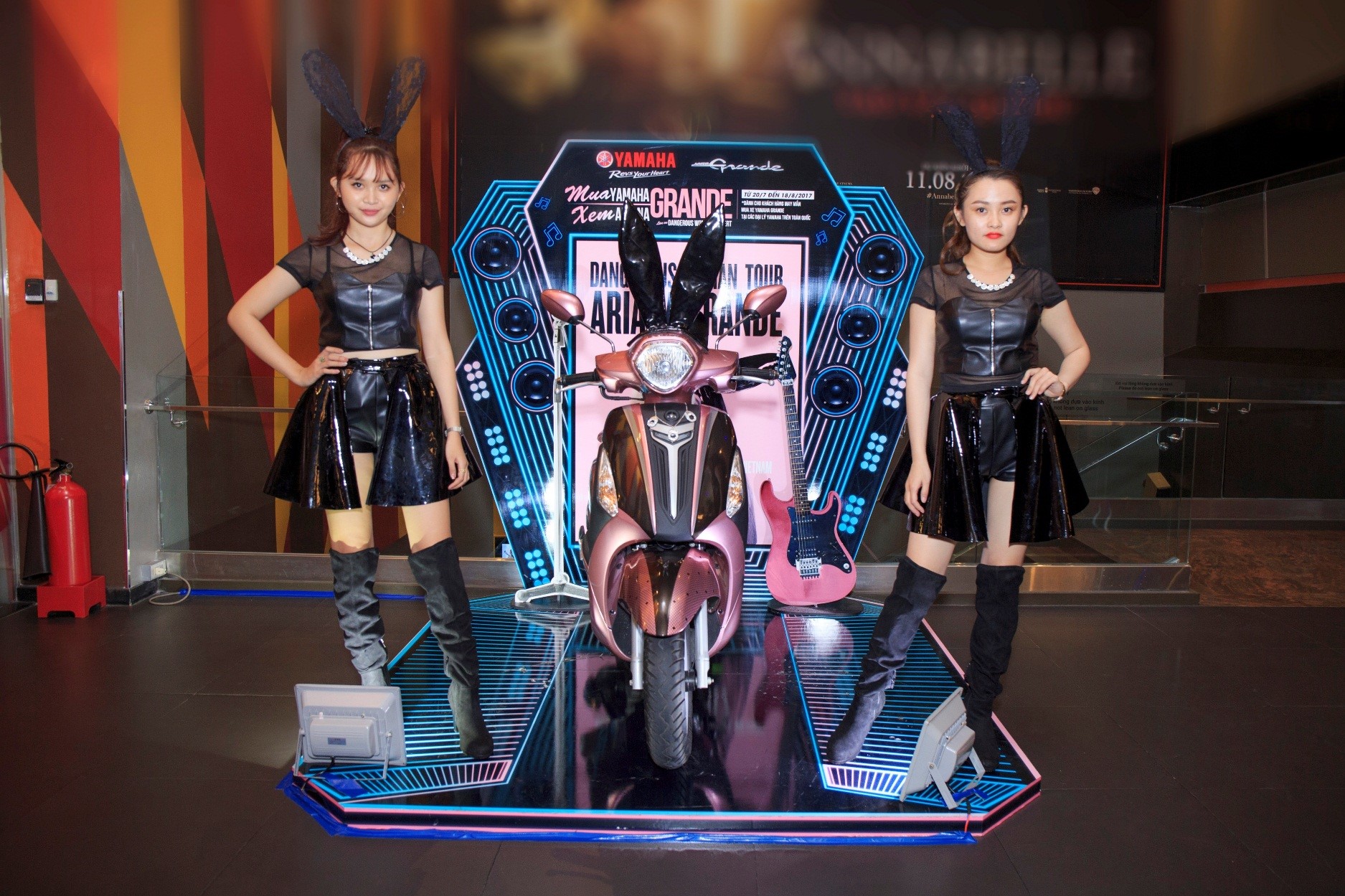 Tại gian hàng Yamaha năm nay trưng bày mẫu xe Grande đặc biệt được trang trí theo phong cách “Dangerous Woman” với bộ cánh đen bí ẩn cùng đôi tai thỏ tinh nghịch theo phong cách quen thuộc của ngôi sao Ariana Grande, người sắp có buổi biểu diễn được các fan Việt Nam mong chờ từng ngày tại Sân vận động Quân khu 7, TP.HCM.