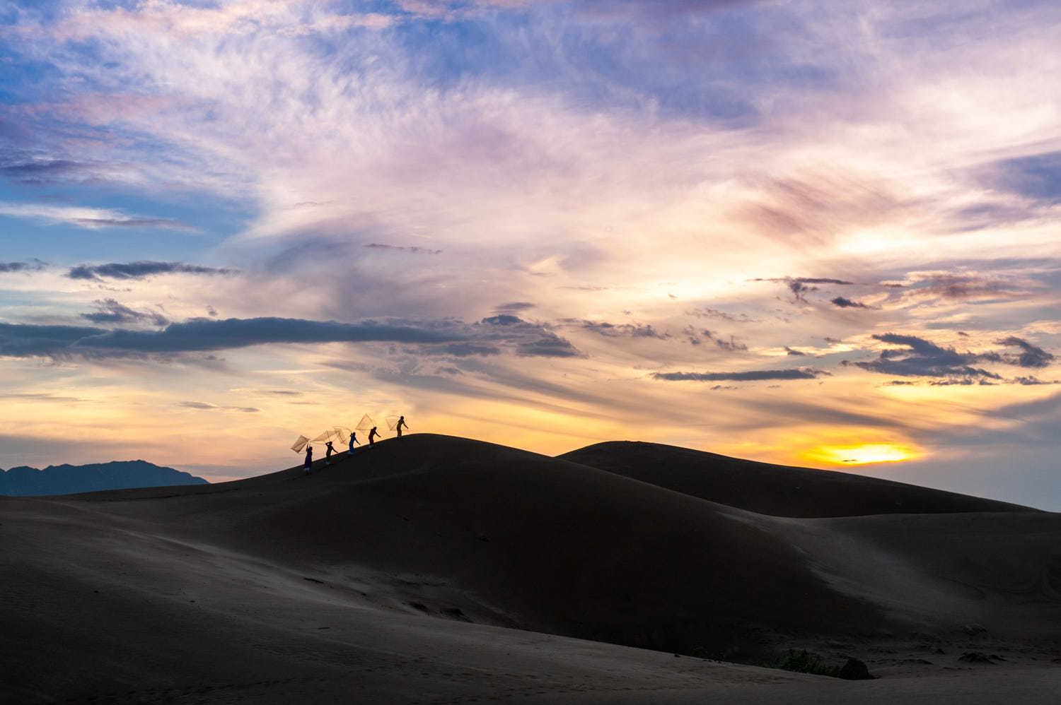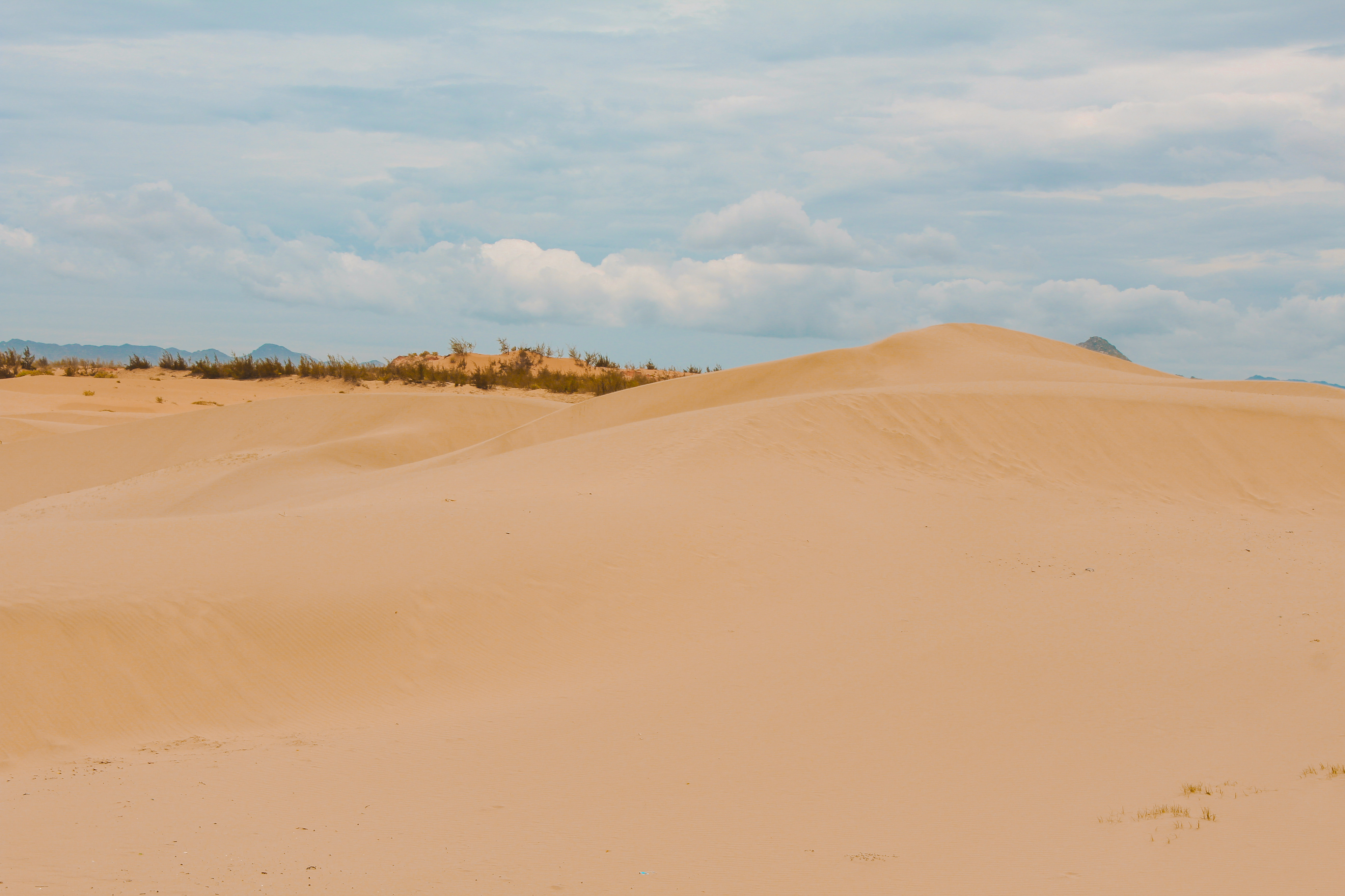 Leo lên những đồi cao, bạn sẽ sở hữu góc nhìn toàn cảnh xuống bốn bề cát trắng. Mỗi khi vạt nắng hay cơn gió lướt qua làm triền cát cựa mình duyên dáng. Những hôm gió lộng, diện mạo đồi cát càng thay đổi với nhịp điệu gấp rút, khiến người lữ khách càng thêm trân quý vẻ đẹp chóng vánh do muôn vàn hạt cát mỏng manh kết thành. Ai nấy mở toang mọi giác quan để có thể cảm nhận vẻ đẹp hữu hạn mà thiên nhiên ban tặng, để rồi thích thú theo chân người dân địa phương săn tìm món sản vật quý hóa đang giấu mình dưới cát: con dông.