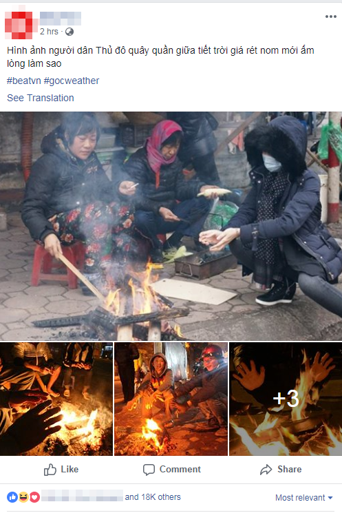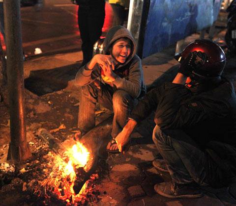 Tuy nhiên, thay vì chia sẻ ảnh khắp nơi, khắp chốn ở Thủ đô nắng nóng như đổ lửa, mới đây, dân mạng lại “rần rần” chia sẻ lại những bức ảnh chụp từ mùa đông. Vào những ngày trời rét dưới 10 độ C, ai nấy đều khăn áo kín mít mà vẫn run lên cầm cập vì rét mướt. Họ phải đốt lửa, ngồi quây quần bên nhau giữa lòng đường để xua bớt cái lạnh.