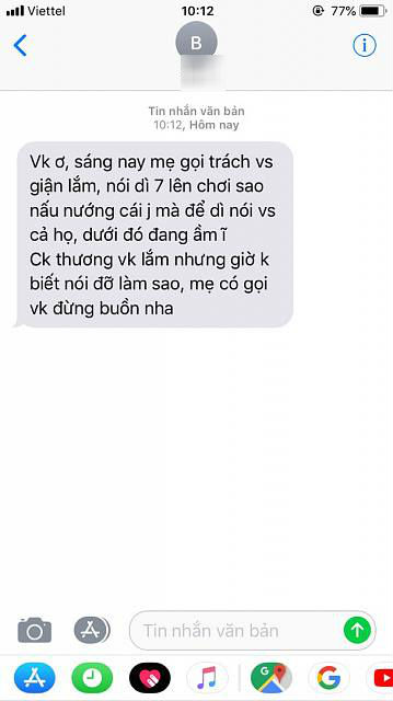 Chuyện nhỏ vậy, tưởng qua rồi thôi, nhưng nghe chồng nhắn tin báo vậy em buồn luôn, may là chồng còn an ủi!”, tài khoản P.T.D than thở.