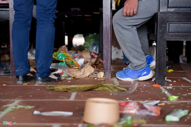 Cũng tại chùa Tam Chúc, vì không có quán bán đồ ăn, thức uống nên người dân thường tự mang đồ ở nhà đi. Sau khi dùng bữa, nhiều du khách vứt rác thải ngổn ngang quanh chùa.