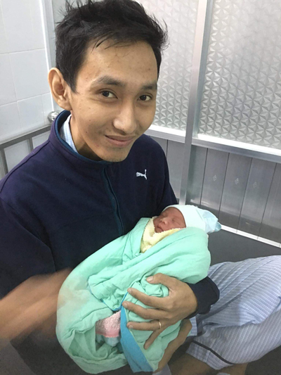 Nhật hạnh phúc trong khoảnh khắc bế con chào đời 24/12 năm ngoái. Ảnh: M.N