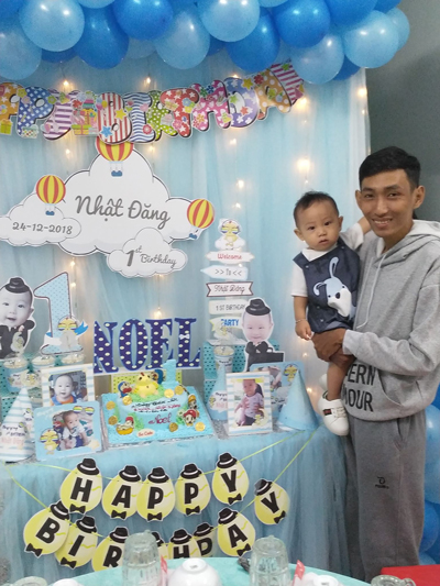 Ngày 24/12 vừa qua, vợ chồng anh tổ chức tiệc thôi nôi cho con trai. Ngày ấy anh vui lắm, tất bật kê bàn ghế, dán hình trang trí. Anh hạnh phúc không chỉ vì thấy bé Noel ngày một khôn lớn, mà còn bởi nguyện ước thứ hai đã thành hiện thực.