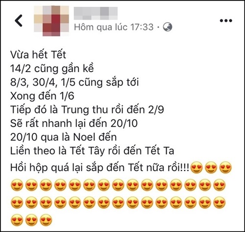 Hàng loạt những dòng trạng thái luyến tiếc, than trời cho tết quay về được dân mạng đăng tải trên mạng xã hội như thế này: