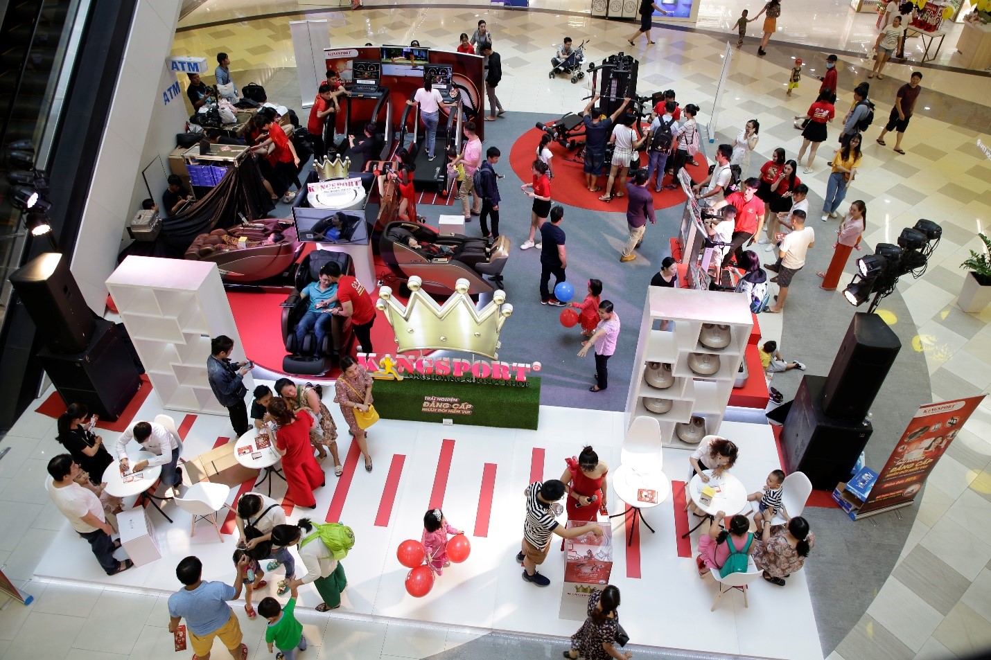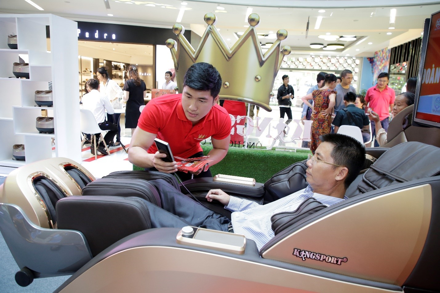 Tại sự kiện lần này, Kingsport không chỉ mang đến không gian tham quan mua sắm chuyên nghiệp mà quý khách hàng còn nhận được nhiều ưu đãi như: mua máy massage chân chỉ với 99.000 đồng, trải nghiệm sản phẩm hoàn toàn miễn phí và cùng tham gia thử thách mini game để rinh về quà tặng siêu hấp dẫn gồm 200 phần quà và hàng ngàn voucher giảm giá siêu ưu đãi lên đến 50%.
