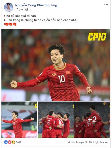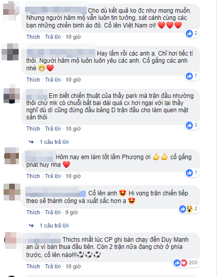 Ngay lập tức, người hâm mộ đã like và để lại những lời động viên tới Công Phượng cũng như đội tuyển: