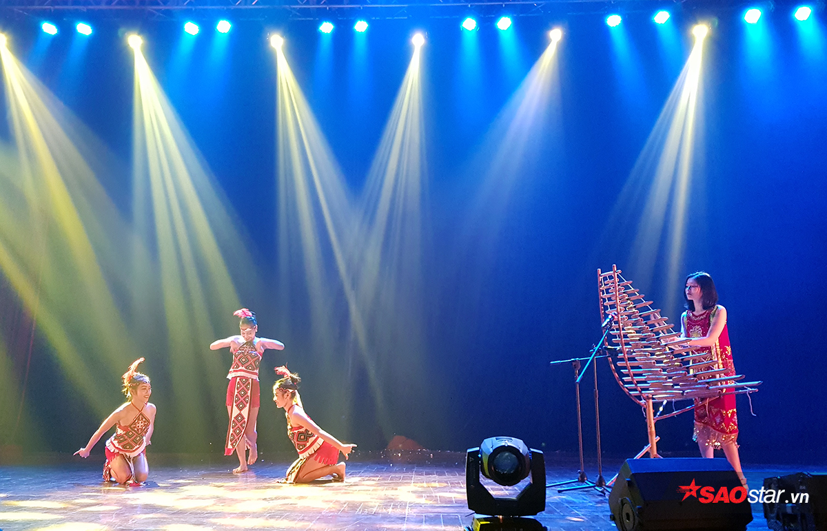 Là thí sinh duy nhất lên sân khấu mà không có đồng đội, Hoàng Phượng Mai (lớp 11 Anh 1) vẫn tự tin làm chủ sân khấu của mình với phần biểu diễn đàn Tơ-rưng trong trẻo