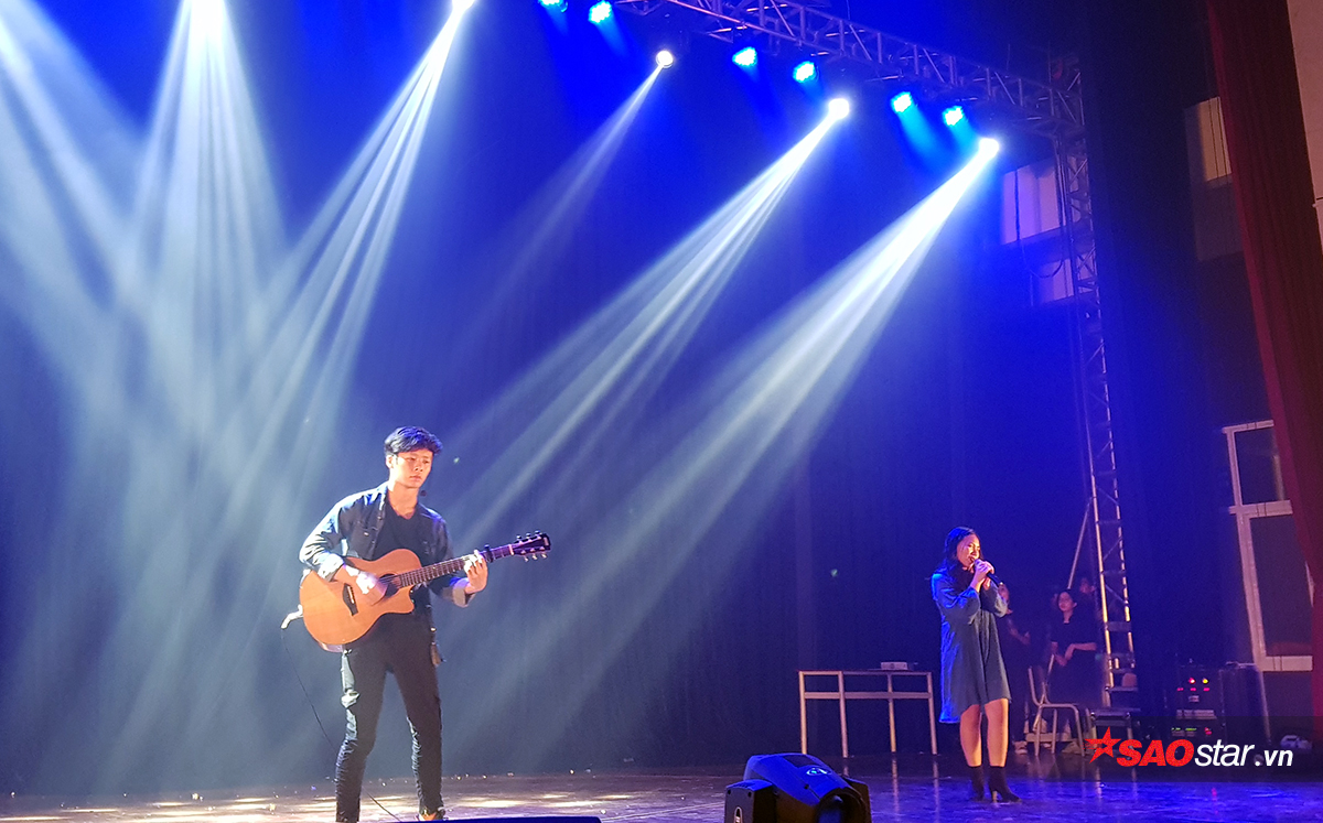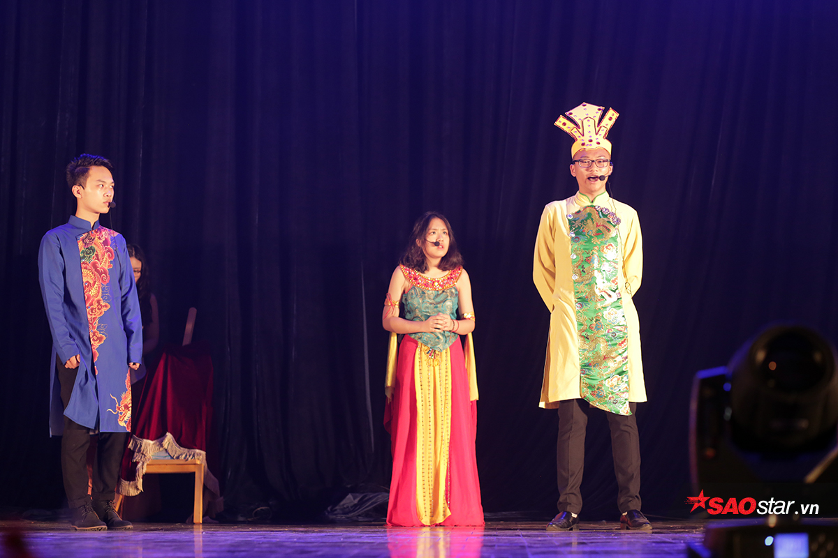 Cao Xuân An (lớp 10 Văn) và Đinh Bảo Trọng (lớp 11 Hóa 1) vào vai Thủy Tinh và Mỵ Nương, tái hiện câu chuyện tình oan trái của Thủy Thần bằng tài năng kịch, piano và vẽ tranh.Lối diễn nhập tâm, cảm xúc và kịch bản độc đáo, sáng tạo chính là điểm sáng của phần thi này.