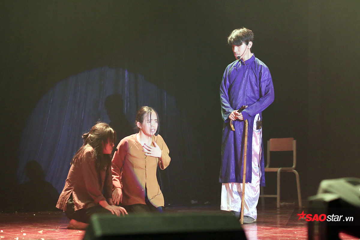 Với trích đoạn trong vở kịch kinh điển “Vợ nhặt”, cặp đôi Lê Trí Nghĩa và Vũ Nam Trang Linh đã thể hiện xuất sắc khả năng hóa thân vào nhân vật, cùng sự tự tin, bản lĩnh và làm chủ sân khấu của mình.