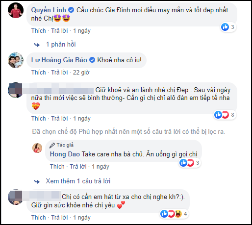 Bên cạnh NSND Hồng Vân, nhiều bạn bè, đồng nghiệp như ca sĩ Hồ Lệ Thu, NSƯT Trịnh Kim Chi, đạo diễn Vũ Ngọc Đãng, cũng gửi lời chúc sức khỏe, động viên nghệ sĩ Hồng Đào và gia đình sớm bước qua giai đoạn này.