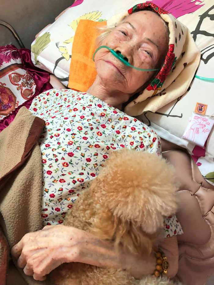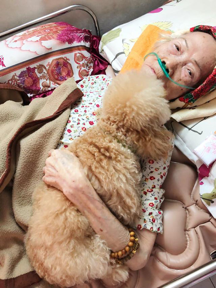 Bài chia sẻ của Ngọc Thảo viết: “Ngày ngoại mình bệnh nặng, cho đến lúc hấp hối, cô chó nhỏ Ốc Tiêu luôn bên cạnh bà. Tính bé hiếu động, không chịu ngồi yên bao giờ, vậy mà những giờ phút cuối của bà, bé nằm yên, nằm cạnh ôm bà như sợ bà rời bé đi mất. Trời thì nóng, bé lông nhiều nhưng vẫn chấp nhận nằm nóng để ở cạnh bà nhiều hơn. Chó là động vật cực kì trung thành, xin đừng ăn thịt chó, hãy bảo vệ loài vật nhỏ nhưng có trái tim bao la này”.