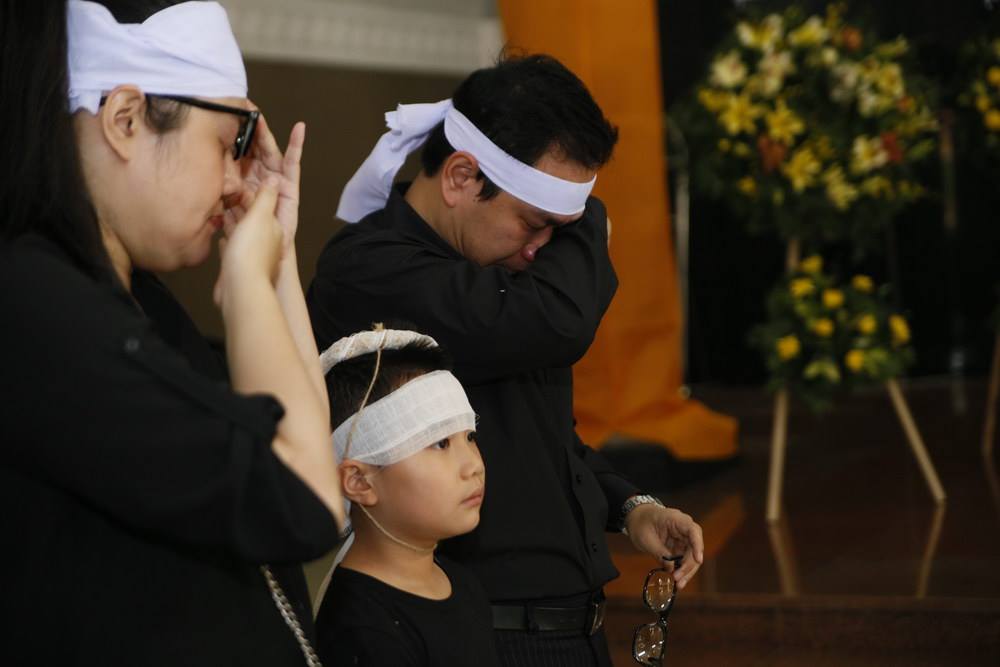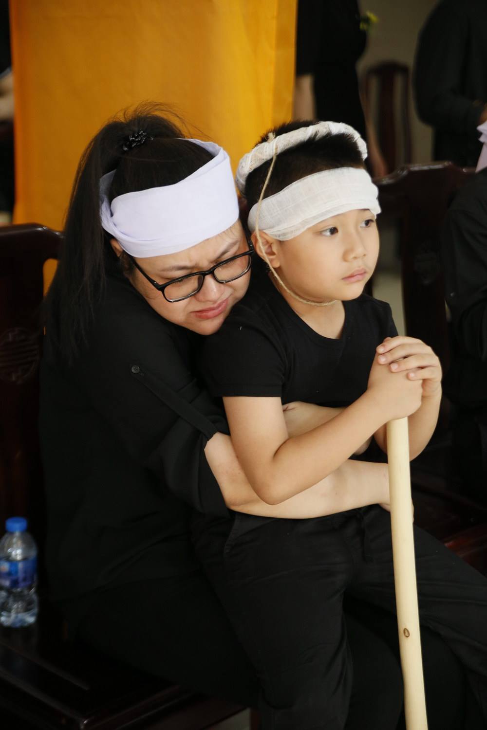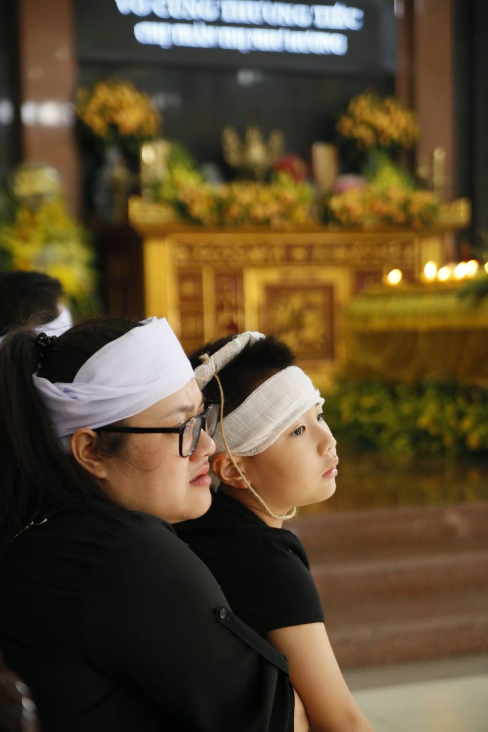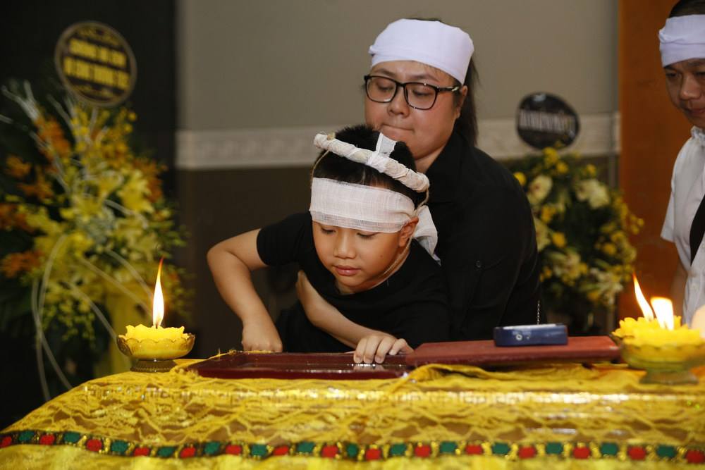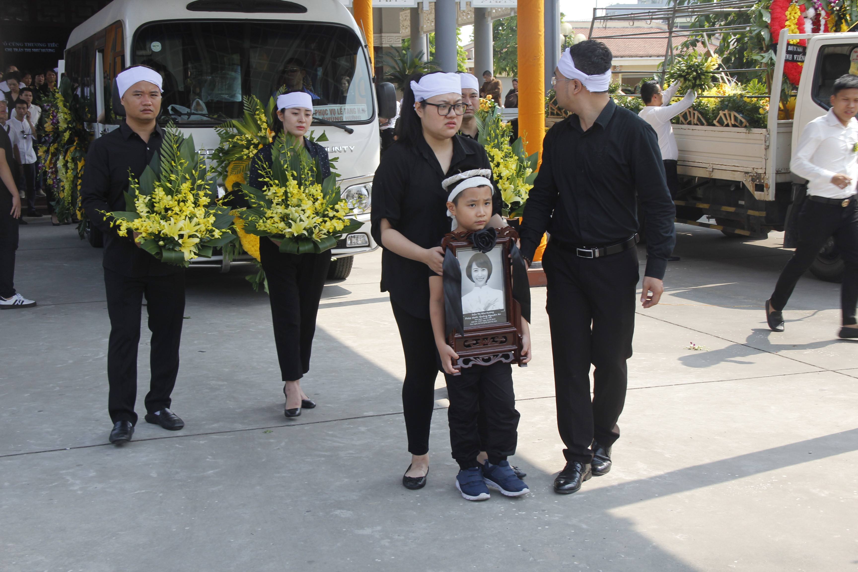 Con trai Như Hương thẫn thờ trong tang lễ của mẹ.