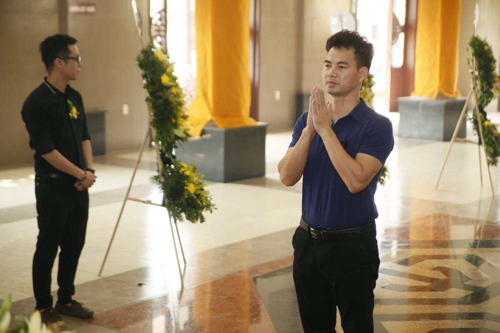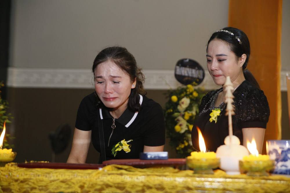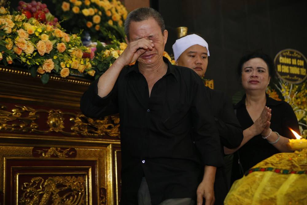 Người mẫu Hoàng Xuân nghẹn ngào trong lễ viếng.