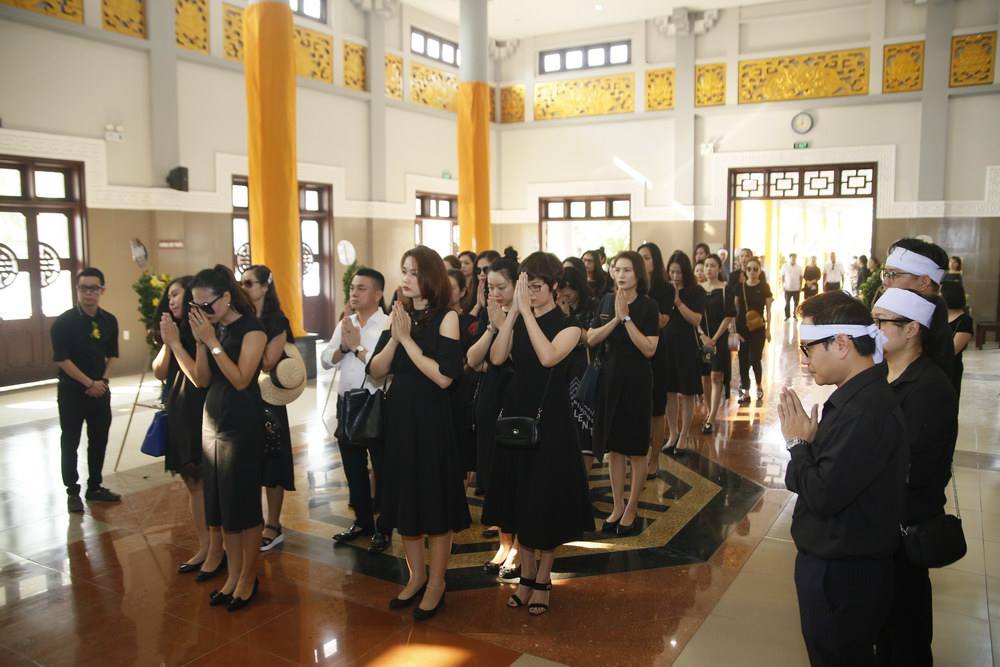 Đông đảo đồng nghiệp và bạn bè đã đến tiễn đưa cố người mẫu về nơi yên nghỉ cuối cùng. NSƯT Xuân Bắc, người mẫu Hoàng Xuân, diễn viên Quỳnh Hoa, ca sĩ Maya… cũng có mặt để chia buồn cùng gia quyến.