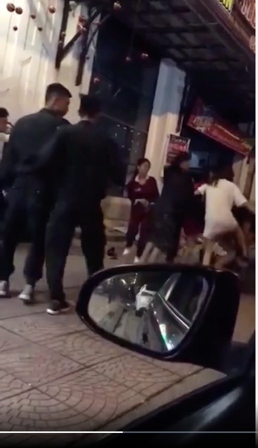Sau khi nạn nhân ngã dúi dụi xuống đất, nhóm “chị em” lại càng mạnh tay hơn, cô gái cố vùng dậy nhưng vẫn không thoát. Một người đàn ông chứng kiến sự việc đã lớn tiếng yêu cầu gọi nhân viên an ninh. Ngay sau đó, 2 nhân viên an ninh chạy lại nhưng tỏ ra bối rối trước sự việc và không biết can thiệp ra sao trước sự hung hãn của các cô gái.