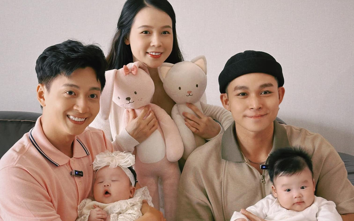 Trong khi đó, Jun Phạm hài hước chia sẻ loạt ảnh ẵm 2 nhóc tỳ của Sam kèm dòng chú thích: “Đây là bé trai Cải Thảo” và “Đây là công chúa Kim Chi”.