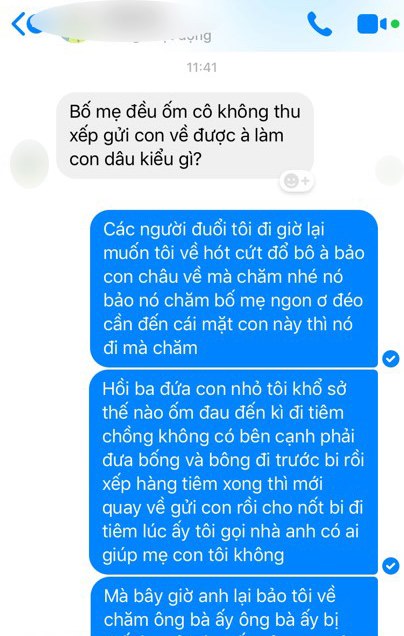 Bố mẹ tao thì già rồi nên khó tính, thấy con dâu nằm không với 3 đứa con thì lại nhiếc móc. Đêm ấy tao mặc cho 4 mẹ con trông nhau cho mà biết, vợ tao thức trắng đêm không ngủ được, hôm sau mới đồng ý về nhà bà ngoại.