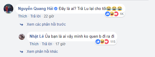 Trong hàng ngàn bình luận đó, bình luận của Quang Hải thu hút hơn 1.000 like. Cầu thủ gốc Hà Nội ngạc nhiên và không tin vào mắt mình trước màn “lột xác” của bạn gái. Anh chàng hoang mang viết: “Đây là ai? Trả Lu lại cho tôi?” (Lu là tên thân mật của Nhật Lê).