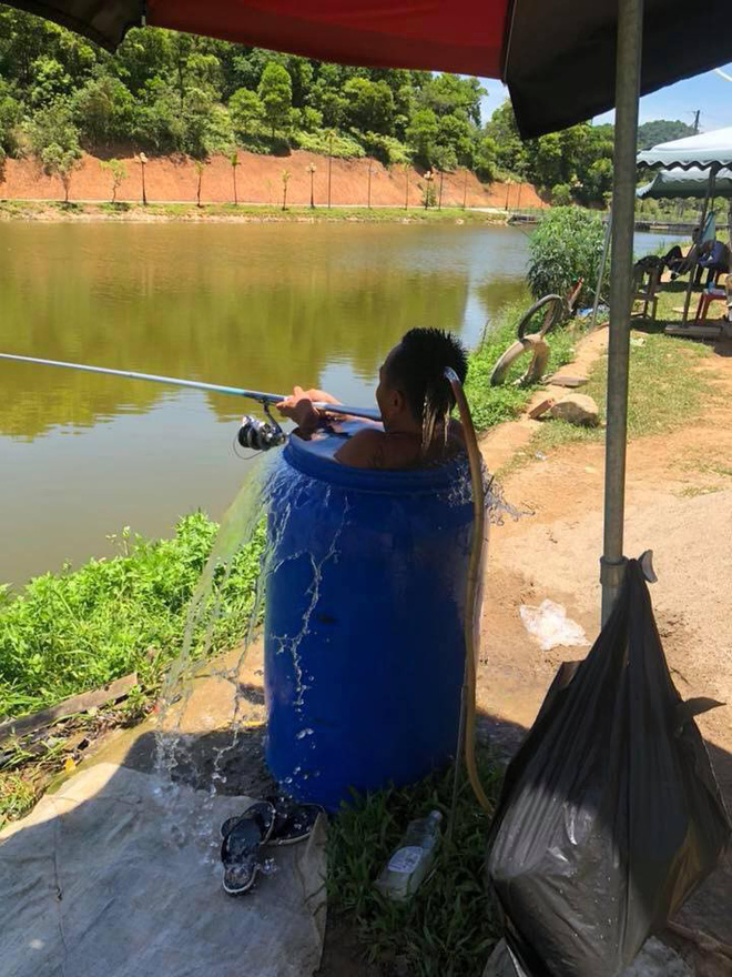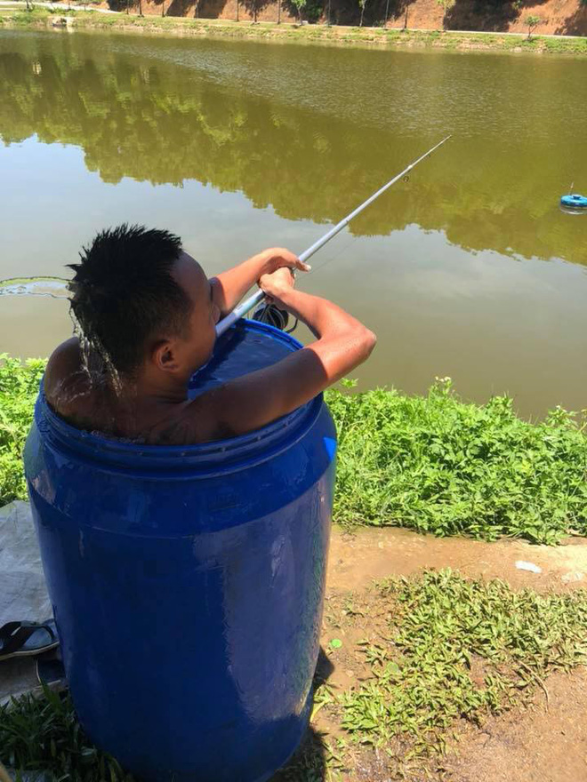 Tuy nhiên, nhiều người lại bật cười và bàt tỏ thắc mắc, thu gọn người ngâm mình trong thùng phuy như vậy thì người đàn ông này giật cá kiểu gì? Họ cho rằng, đây chỉ là một bức ảnh với mục đích hài hước nhân ngày Thủ đô và miền Bắc, miền Trung nắng dữ dội.