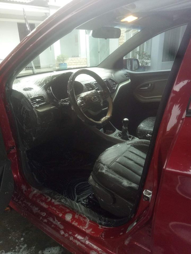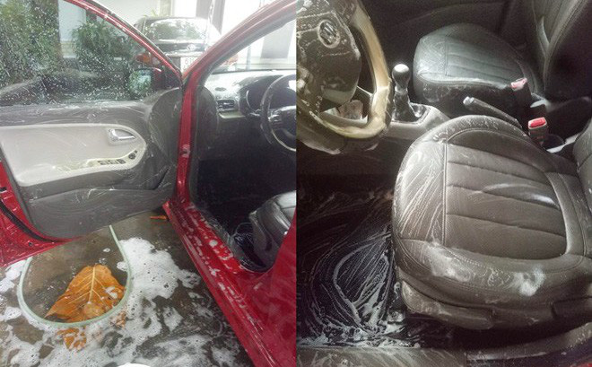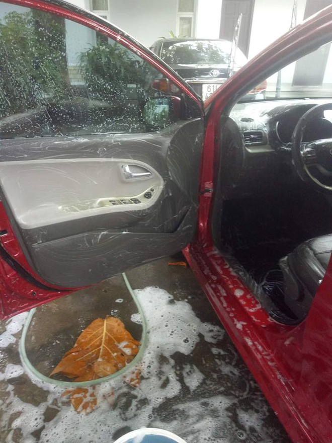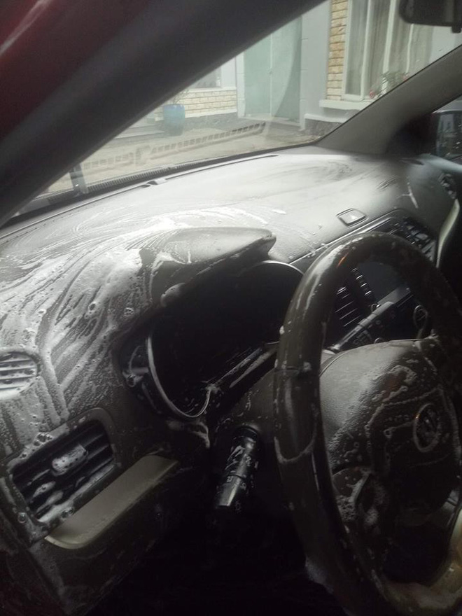 Anh chồng được phen “điếng” người sau khi nhận được loạt ảnh lau chùi kì cọ của vợ lên chiếc ô tô. Do không hiểu biết về hệ thống máy móc trên ô tô nên người vợ này đã thản nhiên chà xà phòng khắp vô lăng, cần số và mọi ngóc ngách bên trong. Chắc có lẽ, chị vợ nghĩ dọn rửa ô tô cũng như việc dọn nhà nên mới hành động như vậy.