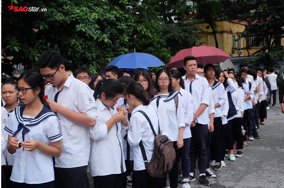 Nhiều học sinh đứng lặng lẽ chờ đợi vào viếng thầy.