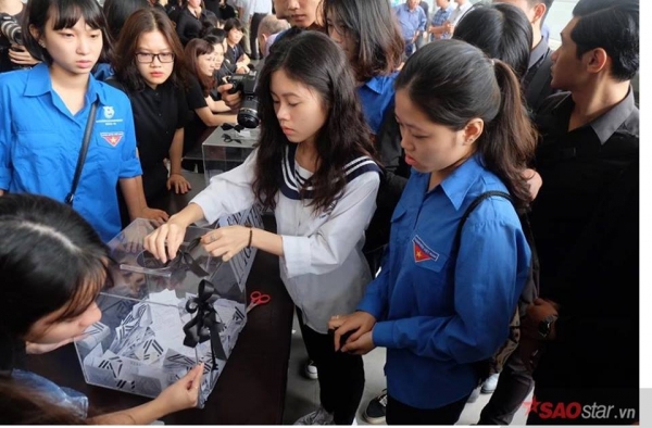 Cũng trong sáng nay, những cánh hạc trắng vẫn được treo ở trường, các em học sinh viết hàng ngàn lời biệt thầy. Bên cạnh đó, họ còn vẽ thêm biểu tượng lá Mobius - biểu tượng của trường Lương Thế Vinh bằng mực đen, giấy trắng, lưu vào hòm kỉ niệm như một lời cầu nguyện bình an cho người thầy họ rất mực yêu mến.