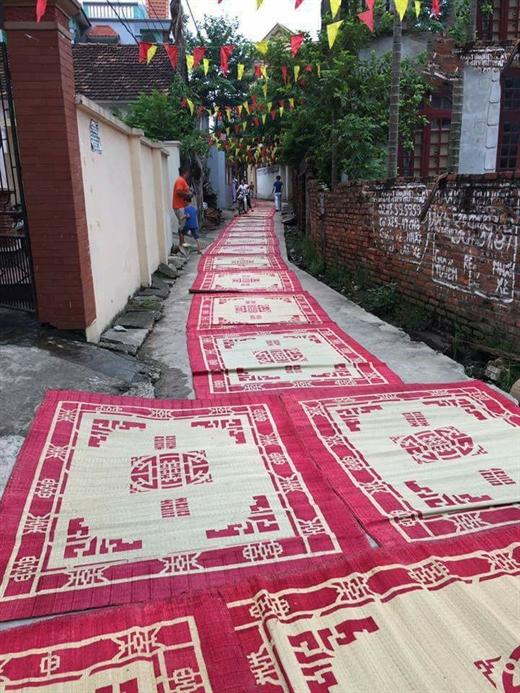 Trước đó, mạng xã hội cũng từng xôn xao trước hình ảnh đường đi trải kín các tấm chiếu đỏ tại xã Thanh Lãng, huyện Bình Xuyên, Vĩnh Phúc. Được biết, đó là một lễ khánh thành nhà thờ và họ đã dùng hơn 70 chiếc chiếu để lót đường khiến những phương tiện qua lại phải e dè vì không dám chạy lên.