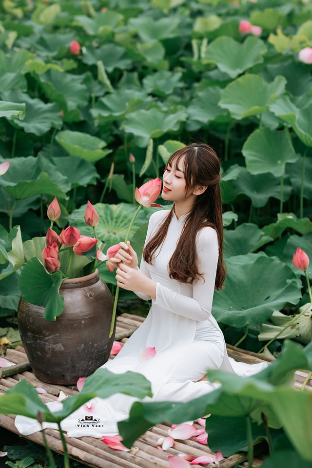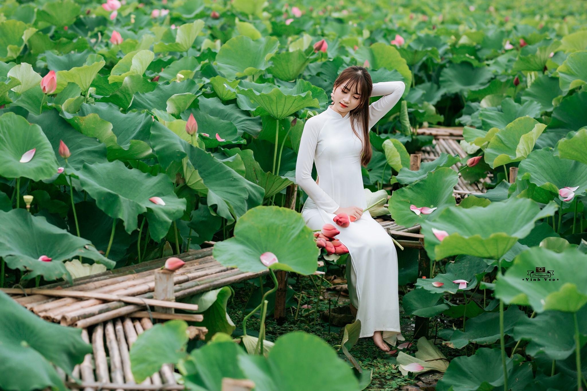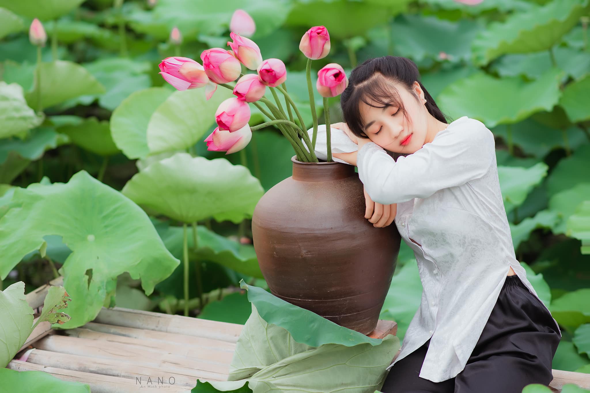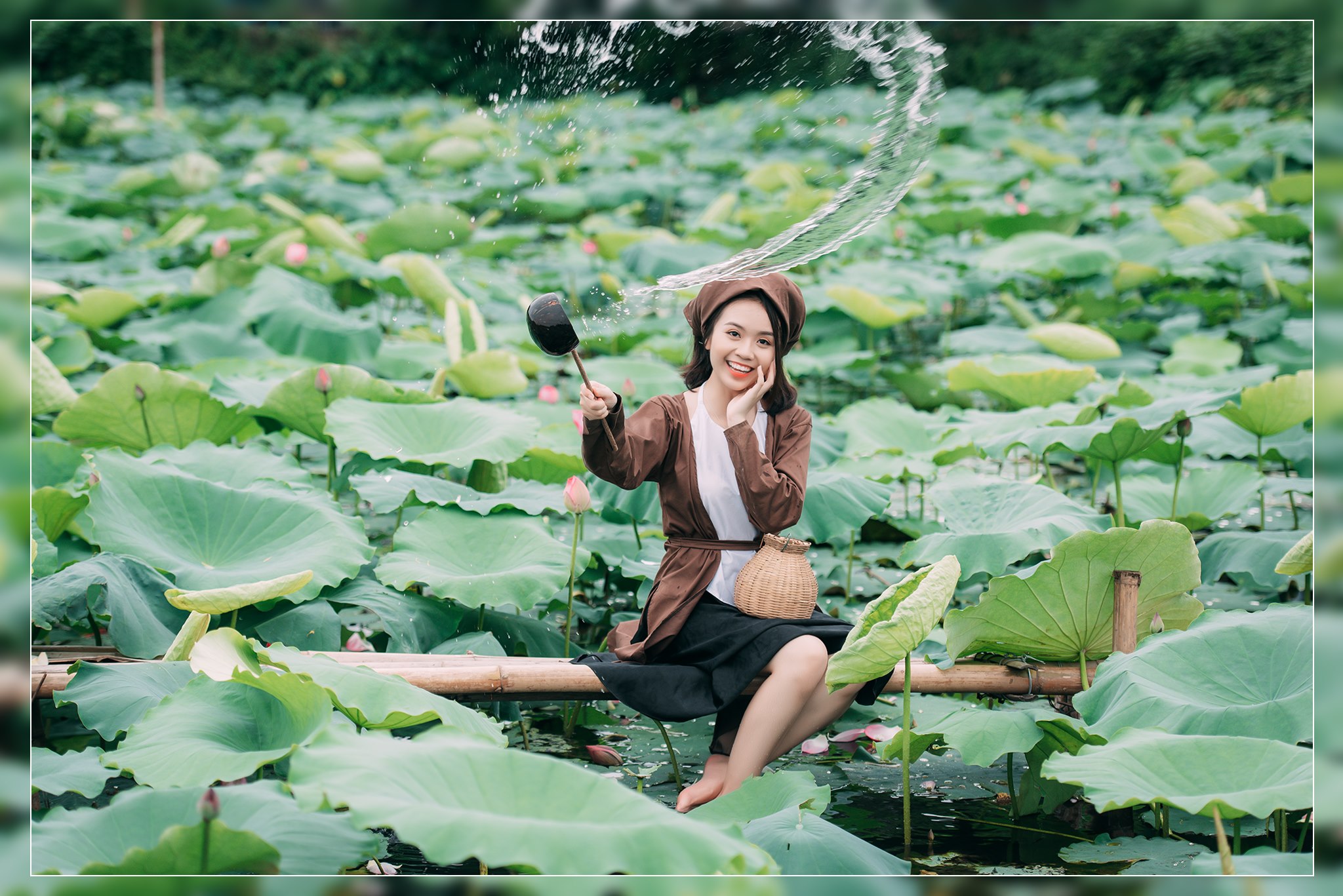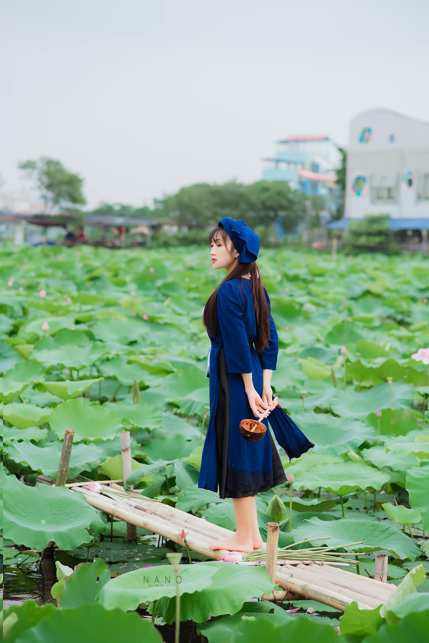 Áo bà ba cũng là một trang phục rất phù hợp với concept hồ sen. (Ảnh: An Minh)