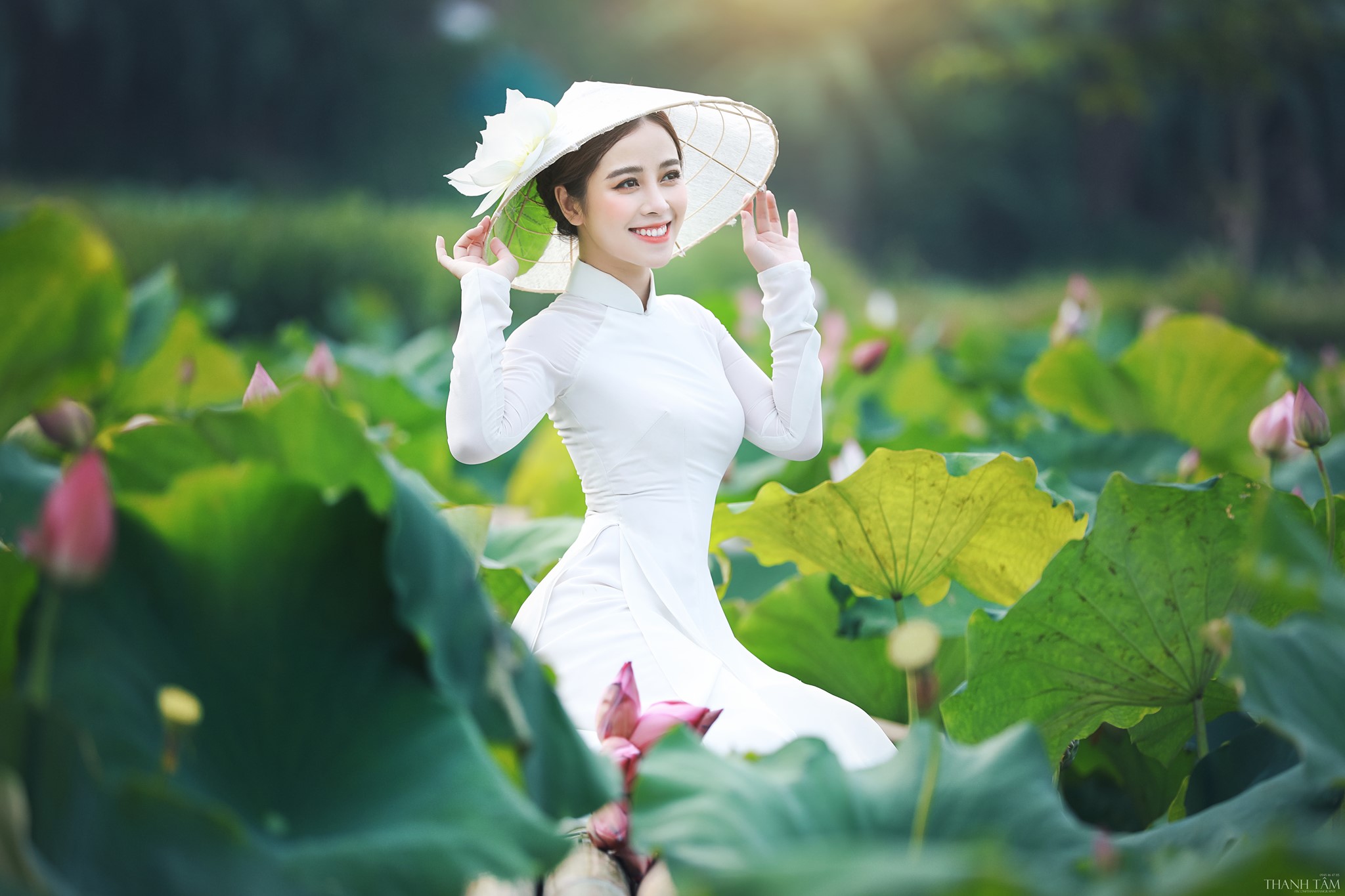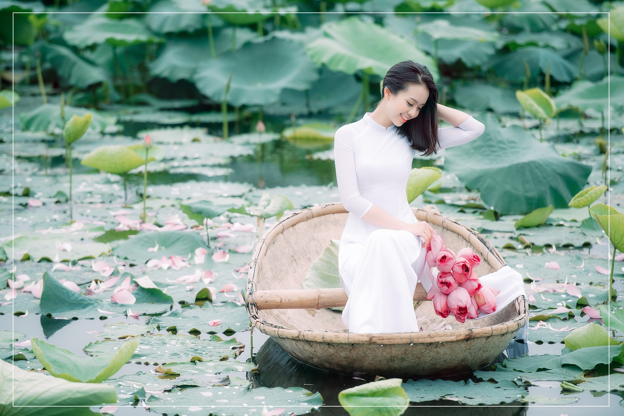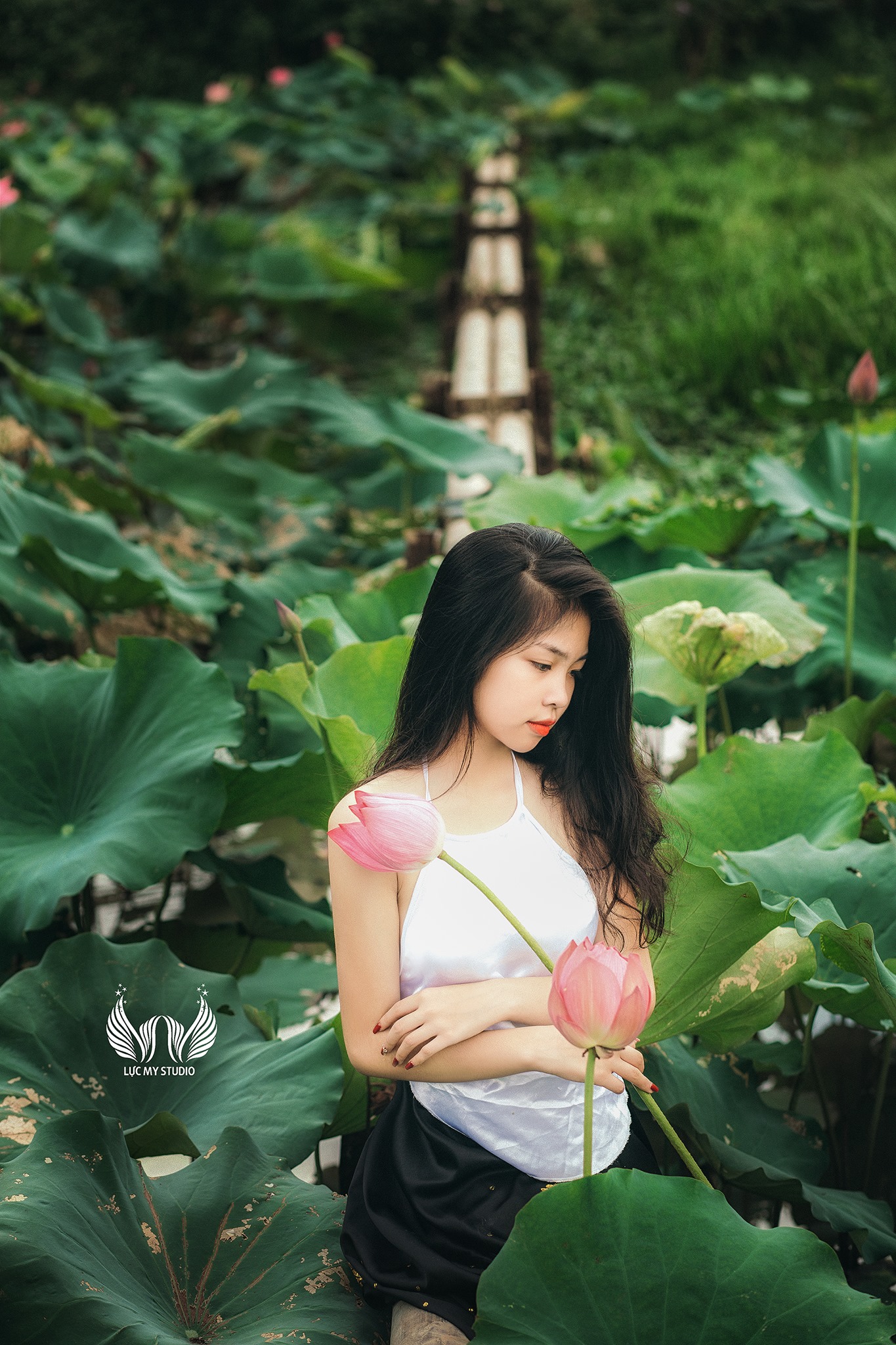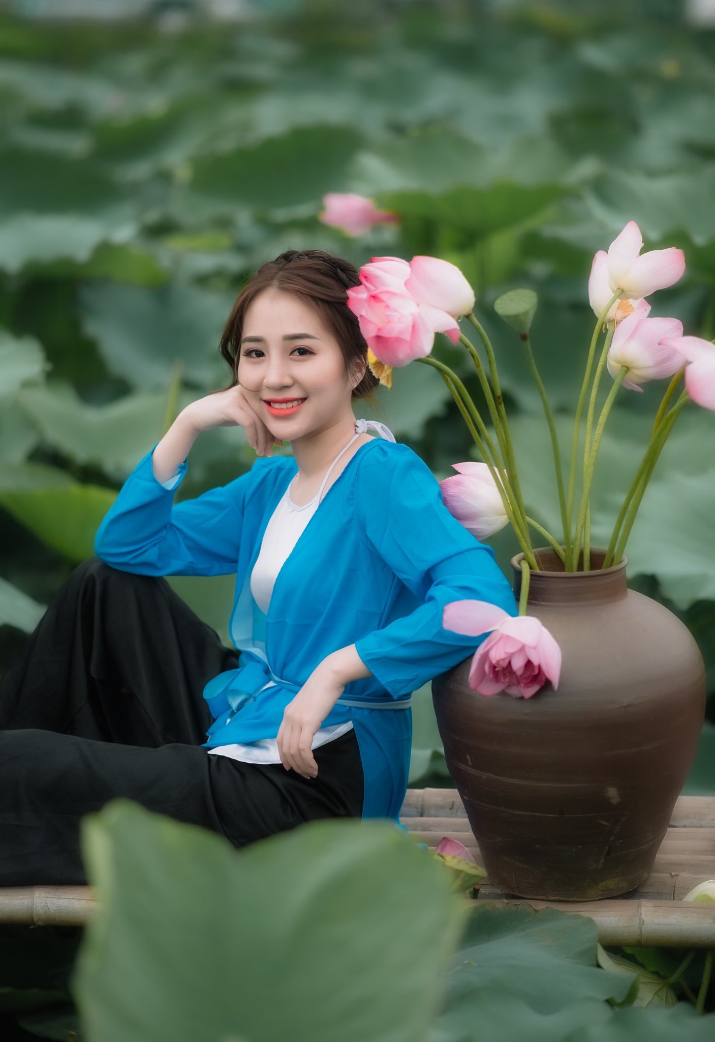 Áo bà ba cũng là một trang phục rất phù hợp với concept hồ sen. (Ảnh: An Minh)