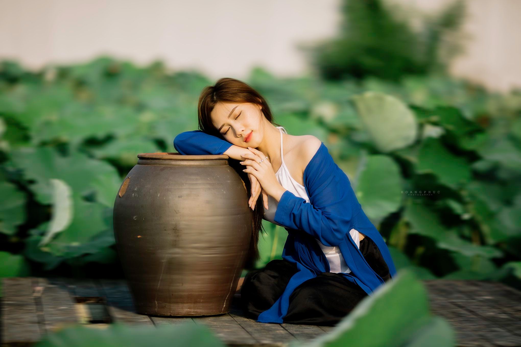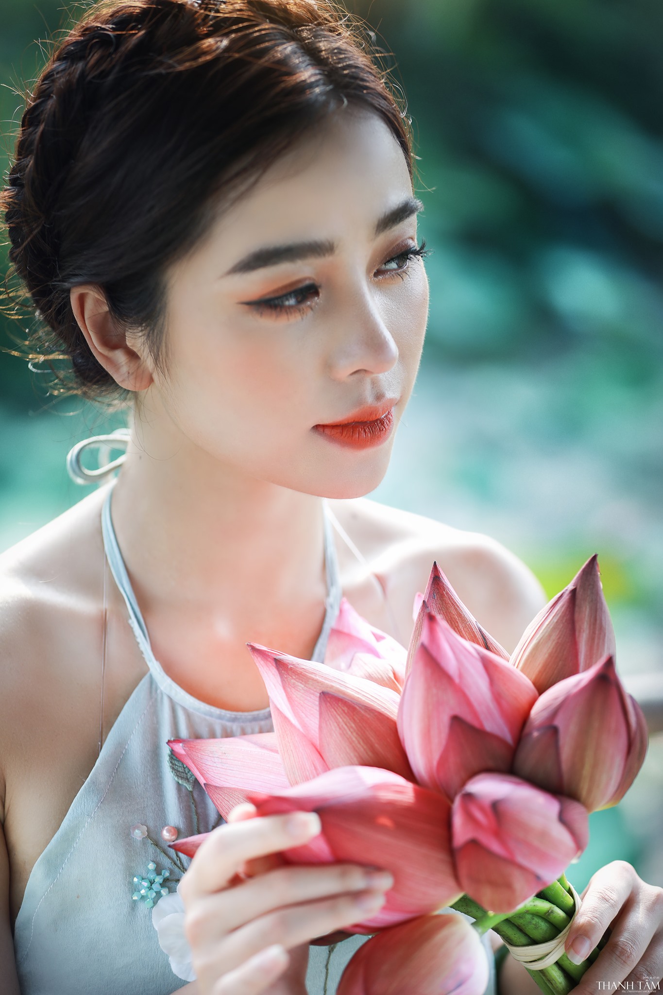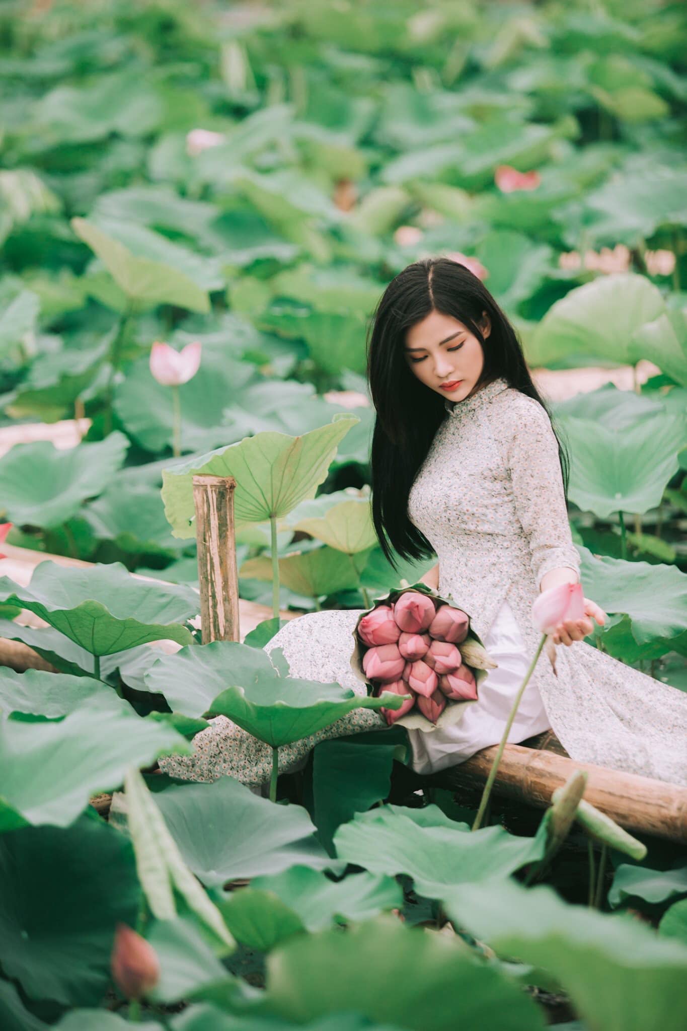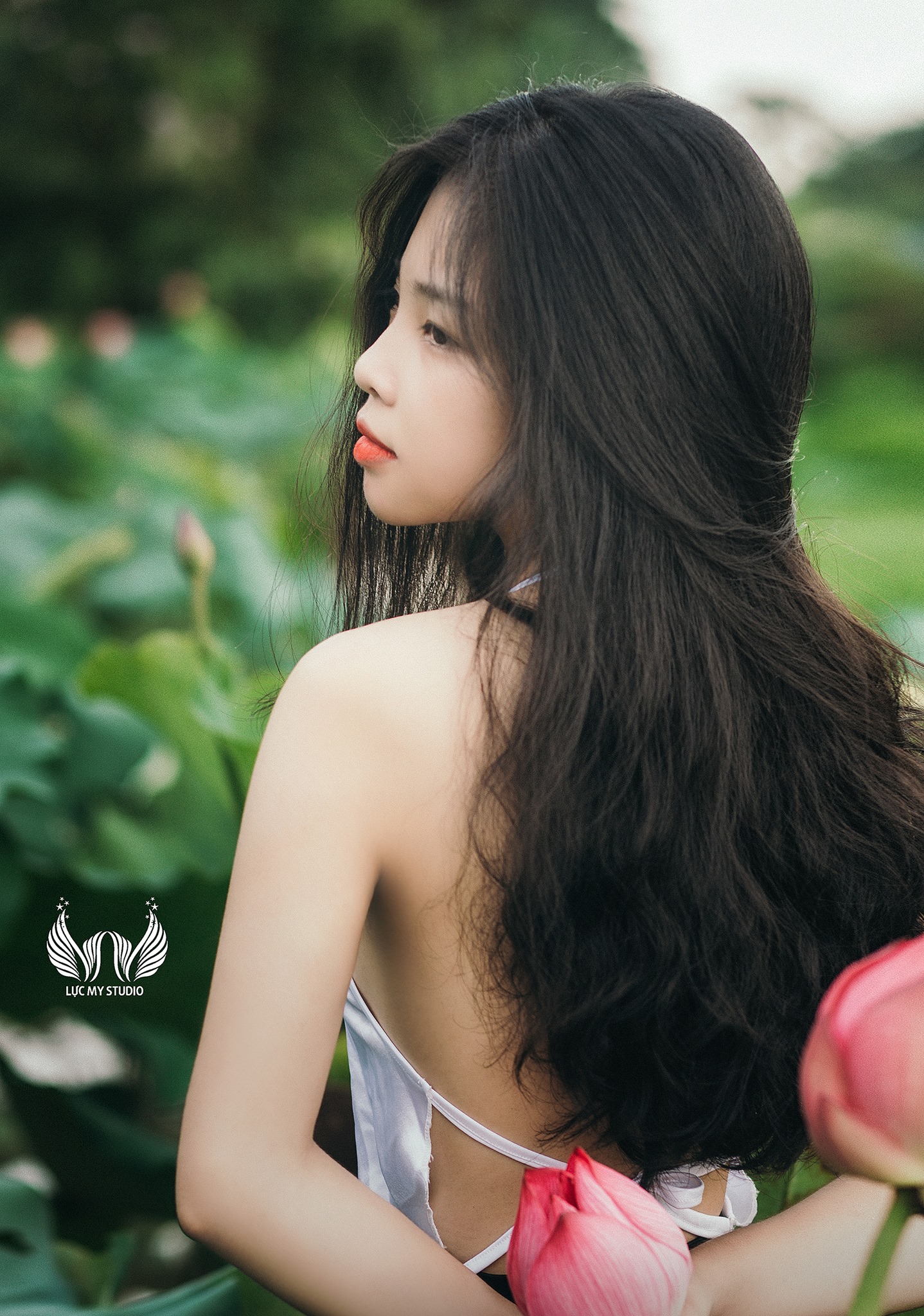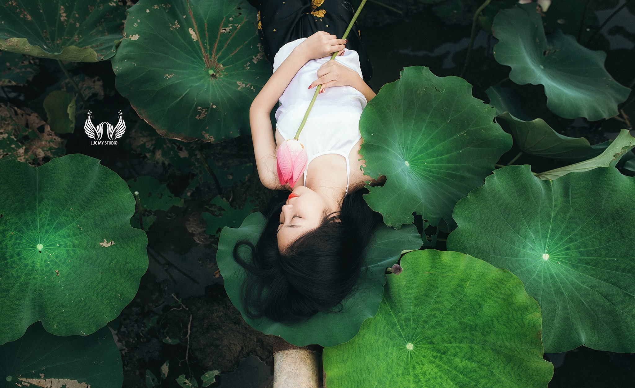 Áo bà ba cũng là một trang phục rất phù hợp với concept hồ sen. (Ảnh: An Minh)