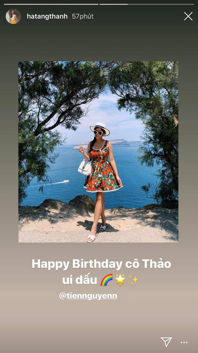 Trong sinh nhật lần thứ 24 của con gái tỷ phú Johnathan Hạnh Nguyễn đầu tháng 5 vừa qua, Tăng Thanh Hà đã chia sẻ một bức ảnh của Tiên Nguyễn lên story mạng xã hội kèm với lời chúc thể hiện tình cảm gắn bó khăng khít giữa hai chị em “Happy birthday cô Thảo yêu dấu”.