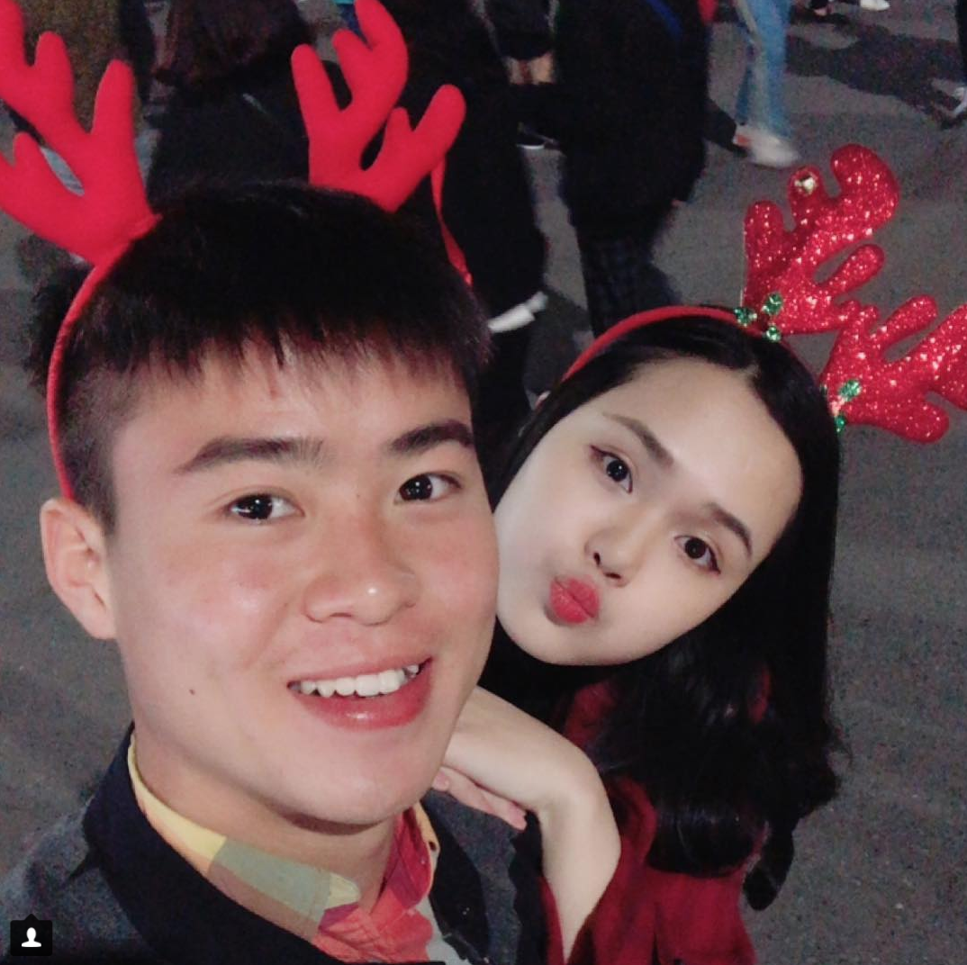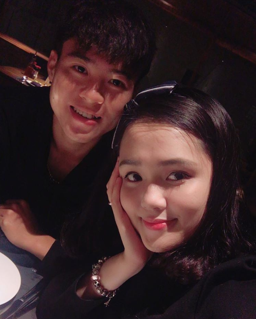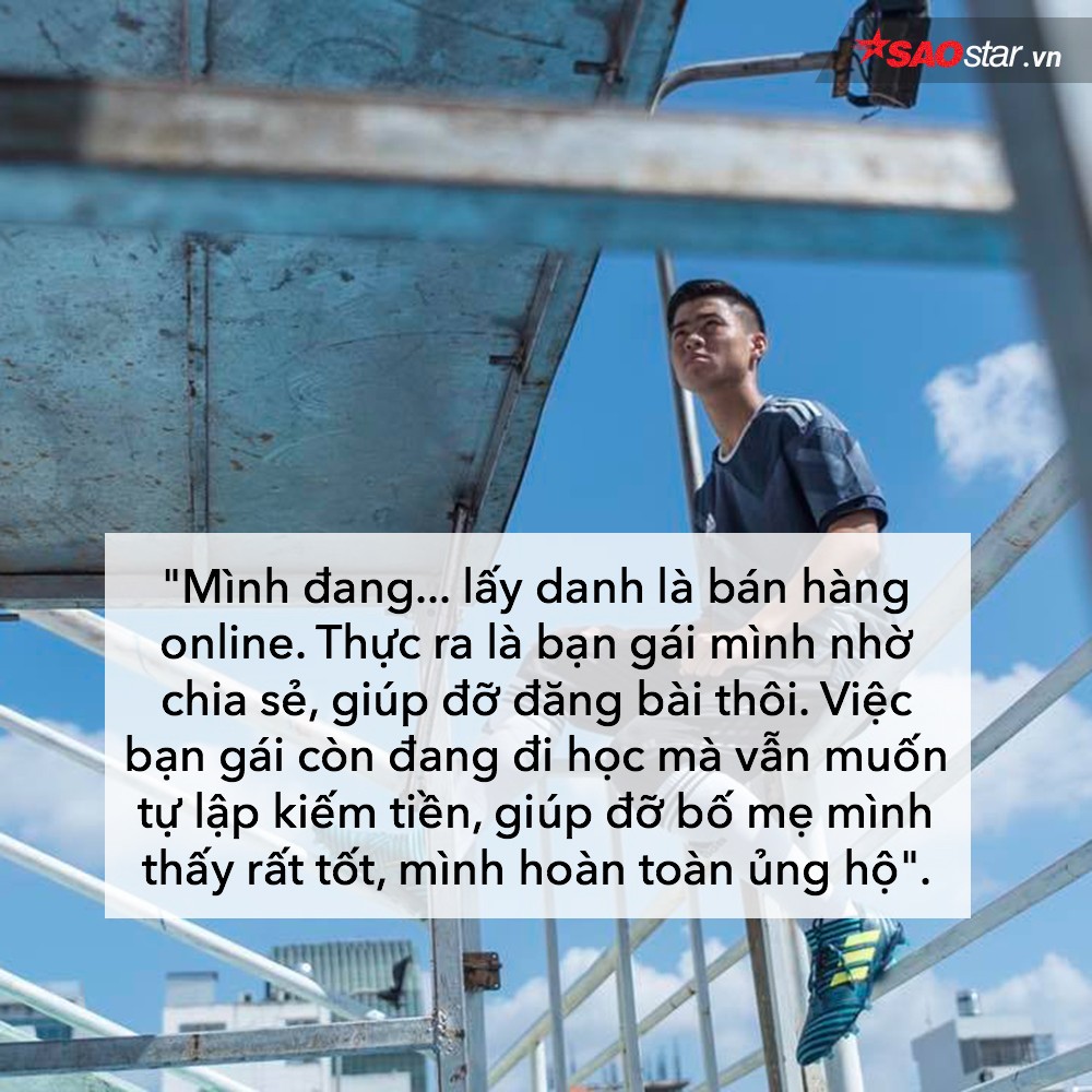 Ngoài việc học, Quỳnh Anh còn tự kinh doanh bán hàng online, nên chàng tiền vệ điển trai chẳng ngại quảng cáo hộ bạn gái.