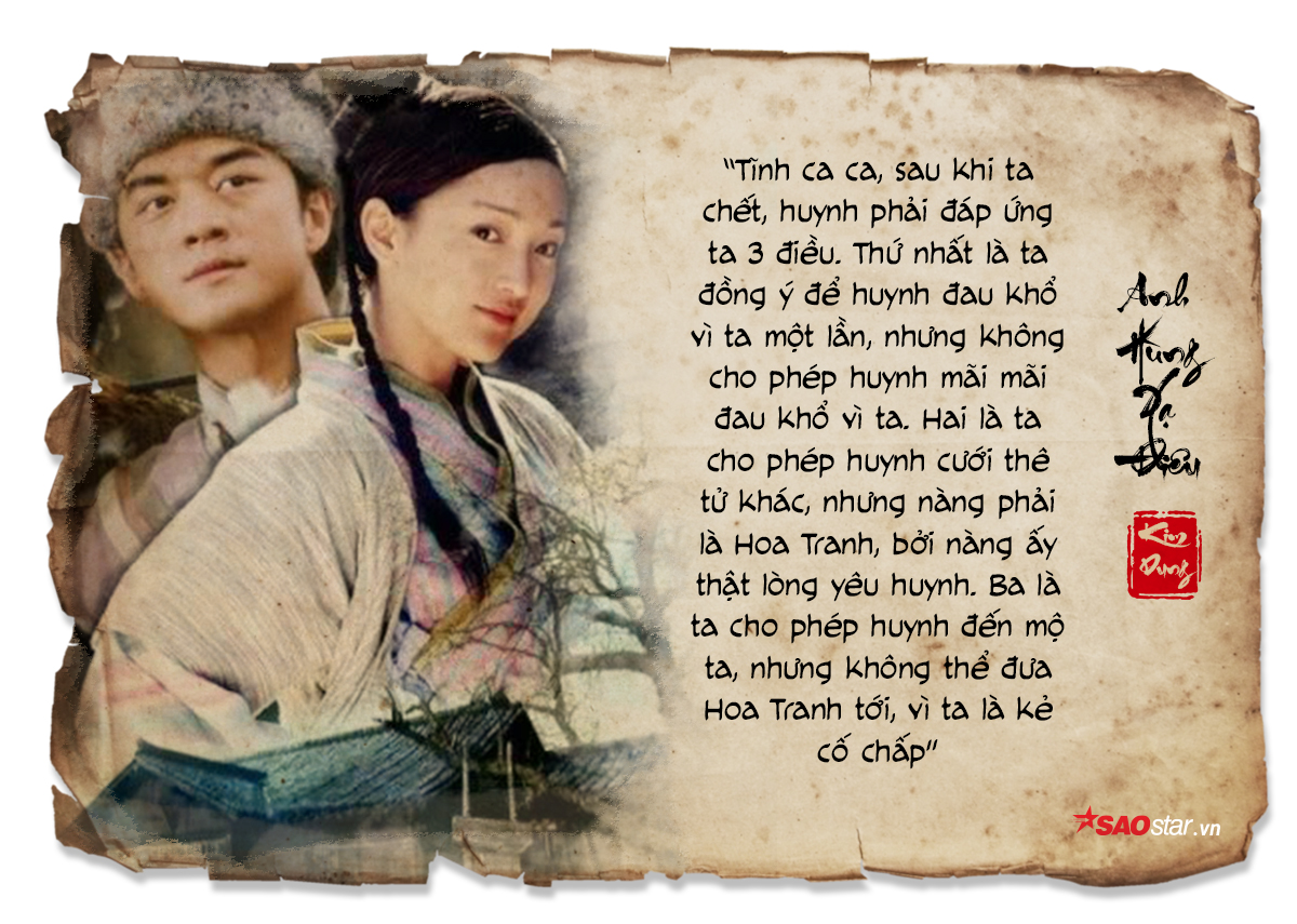 Mối tình đơn phương của A Tử dành cho Kiều Phong khiến người xem vừa giận, vừa thương. A Tử cả một đời chỉ si tình với anh rể. Khi Kiều Phong tự tử ở cuối phim, A Tử đã ôm lấy anh và khóc: “Giờ huynh chết rồi, sẽ không còn ai giằng lấy huynh từ muội nữa. Muội hoàn thành tâm nguyện rồi”, rồi cô ôm Kiều Phong cùng nhảy vực.