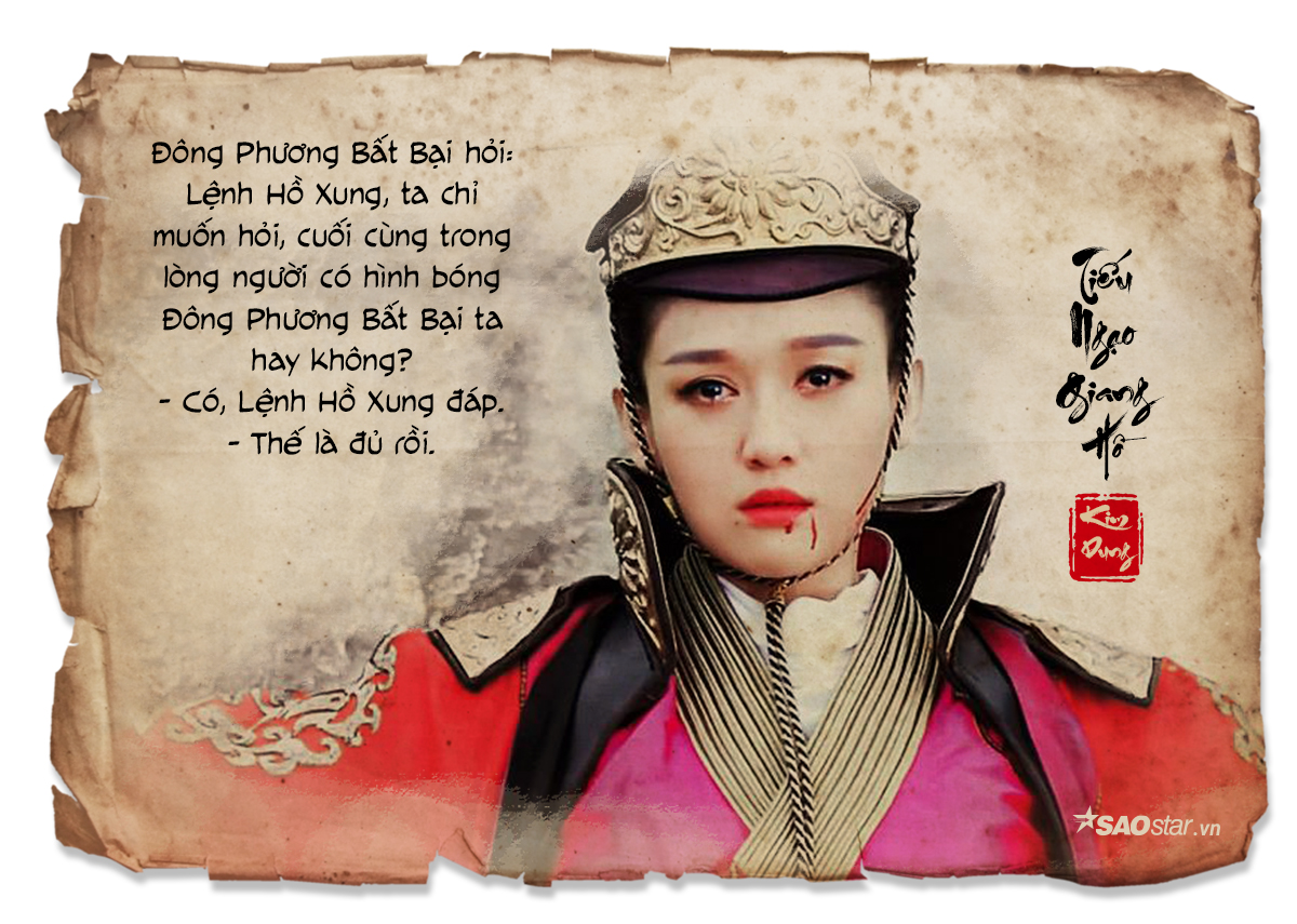 Còn Đông Phương Bất Bại trong bản phim của Vu Chính thì một đời si tình Lệnh Hồ Xung, đến lúc nhảy xuống vực vẫn không thôi!