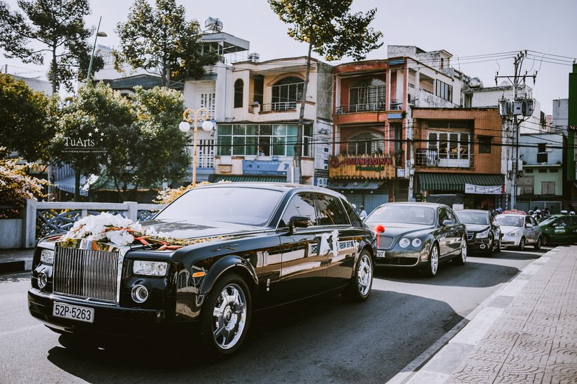 Những chiếc ô tô rước dâu đắt tiền.