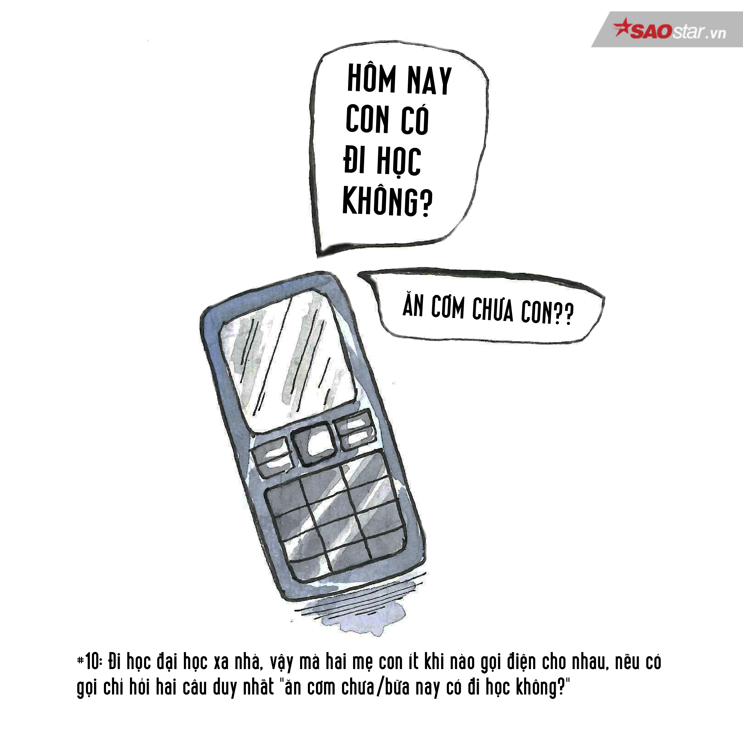 Nhiều khi chủ nhật mẹ không nhớ lại gọi lên hỏi hôm nay có đi học không, mới đi học về à hay buổi trưa cứ gọi con hỏi ăn cơm chưa, sợ sinh viên đứa nào cũng lo ngủ quên ăn lại bỏ bữa.